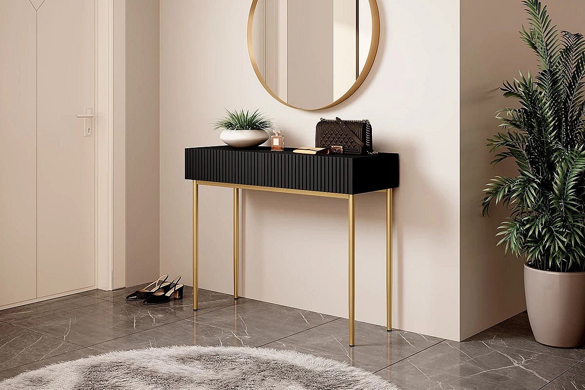 Consola de 2 cajones con pie de metal negro dorado 100x82 cm