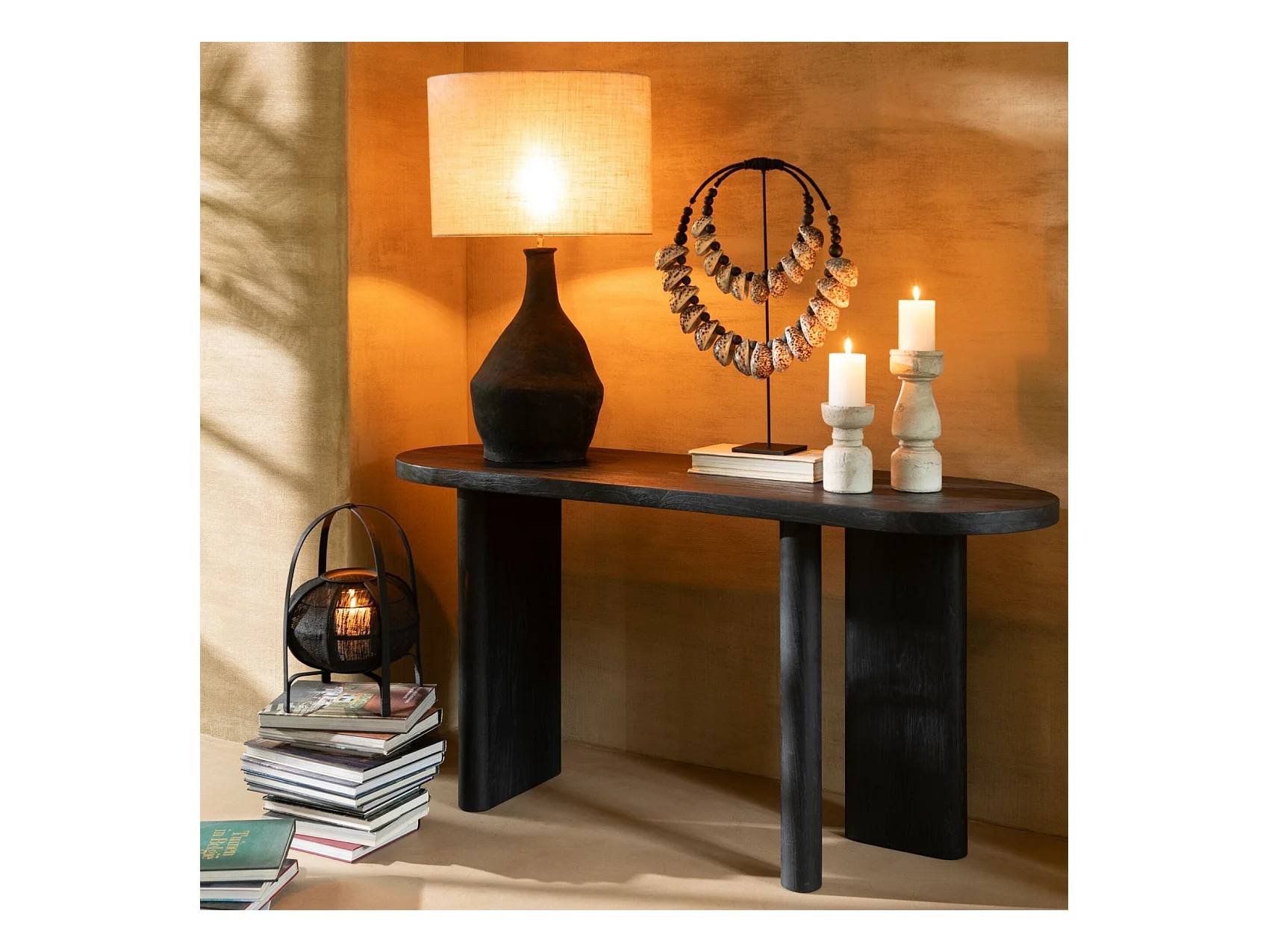 Mesa consola madera maciza de acacia y mango negro 110x35x76 cm