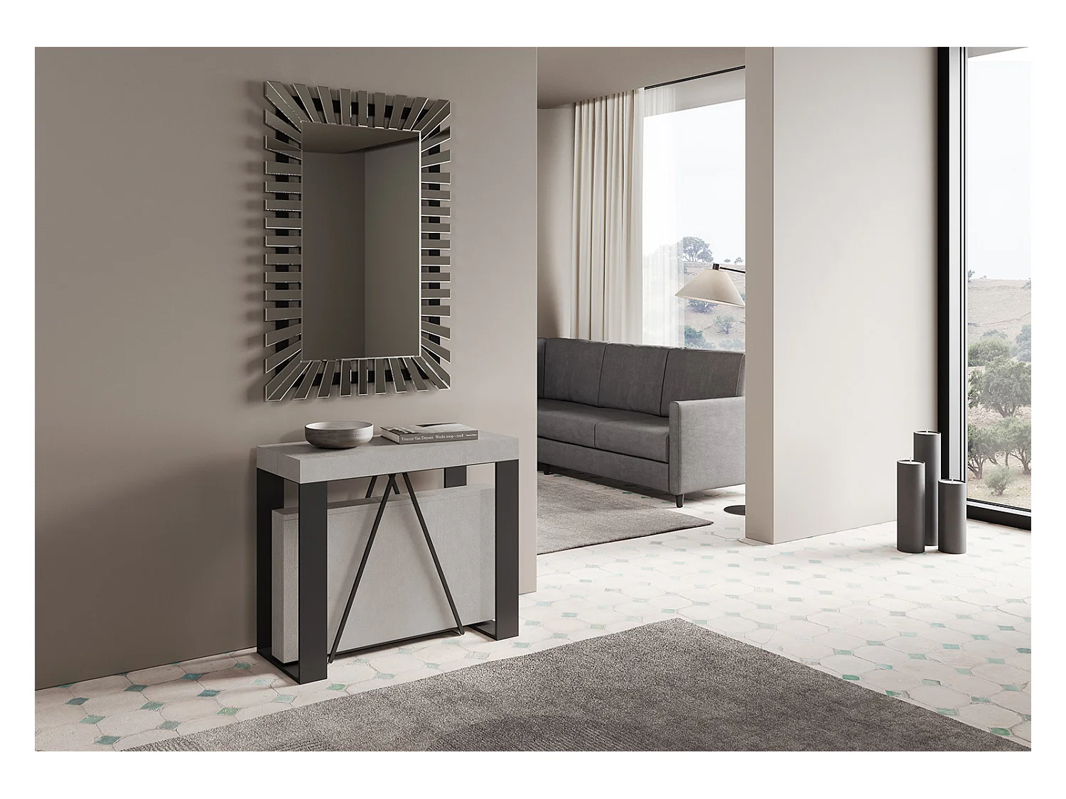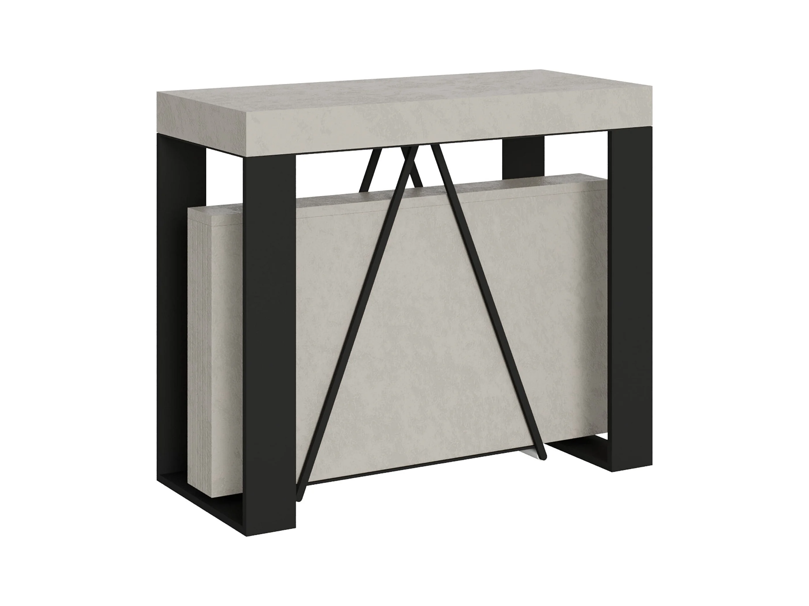 Consola extensible de diseño en madera Diago 90x40/196 o 90x40/300-Color Gris cemento-Soporte 2 pies-5 alargaderas finas