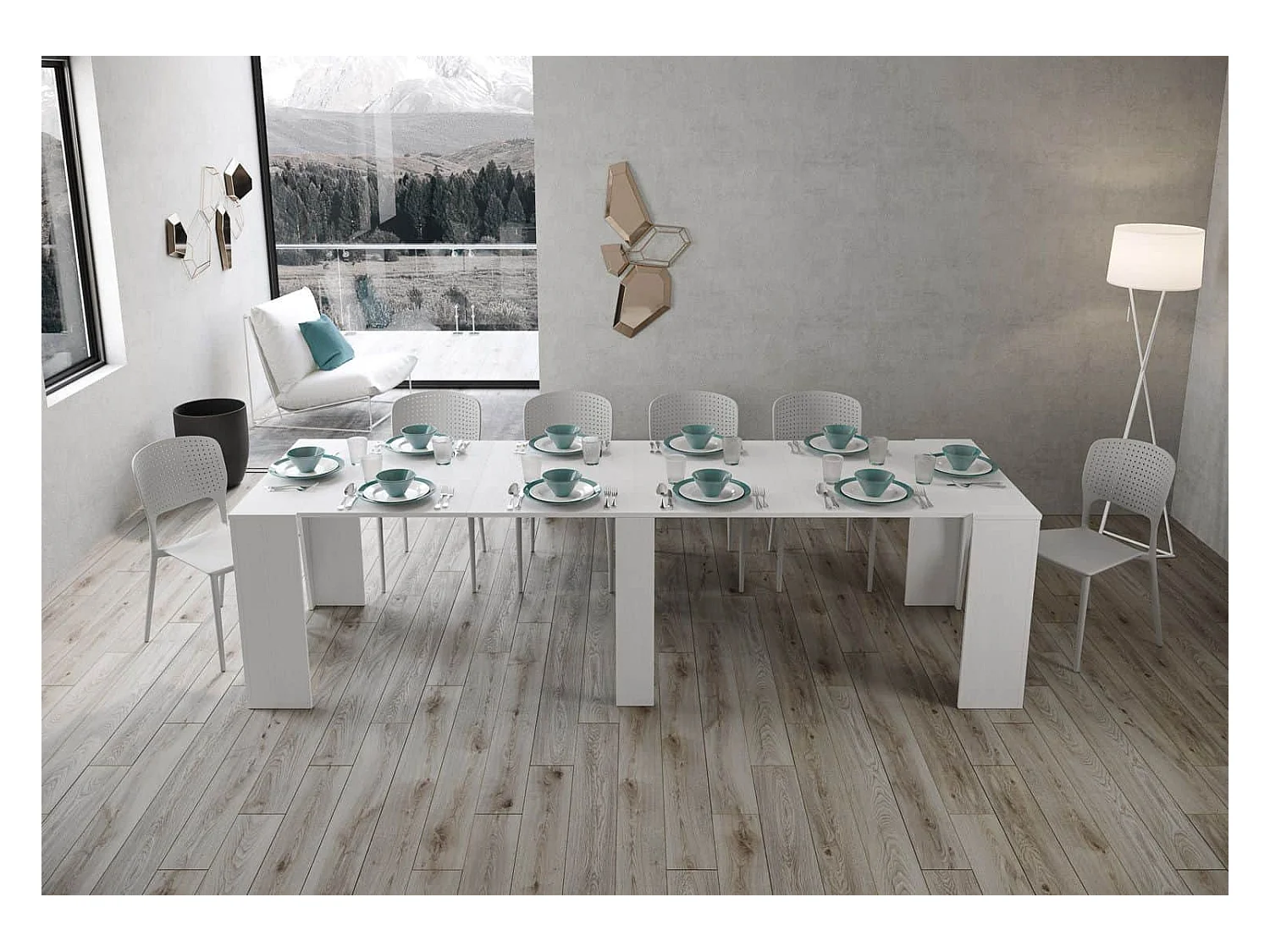 Consola extensible de madera Bina 90x48/204 o 90x48/308 cm-Color Blanco-Alargaderas 5 extensiones