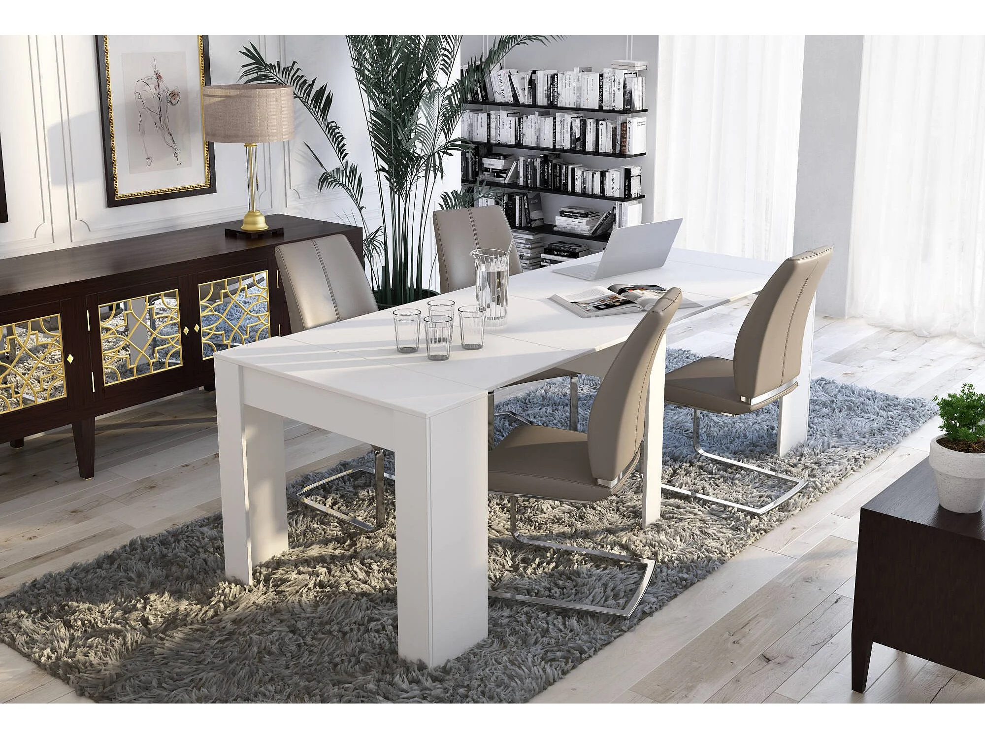 Consola extensible Alberique, Mesa con extensiones, Consola multiusos, Mesa de comedor extensible hasta 10 plazas, 90/237x51h78 cm, Blanco