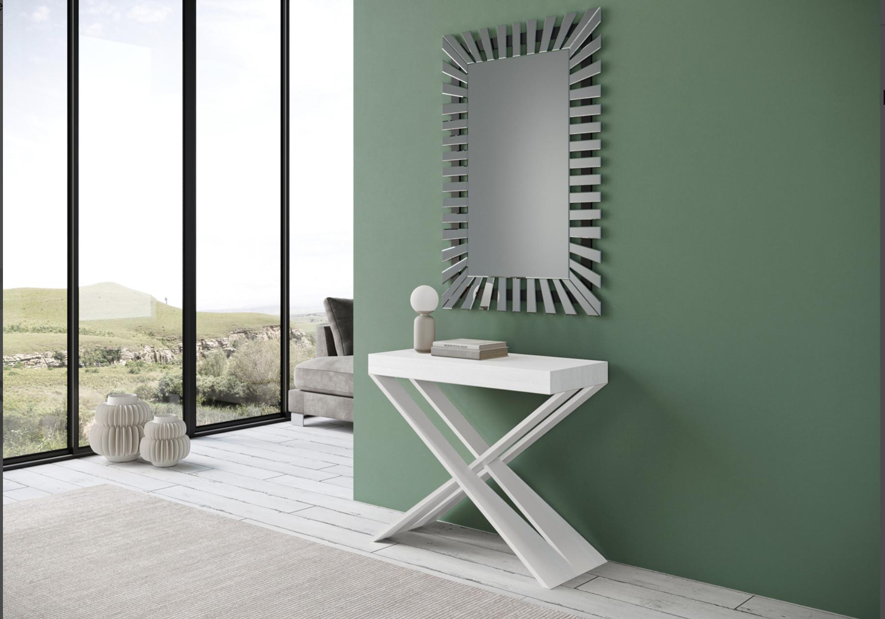 Consola extensible de diseño en madera Diago 90x40/196 o 90x40/300-Color Natural-Soporte 4 pies-3 alargaderas finas