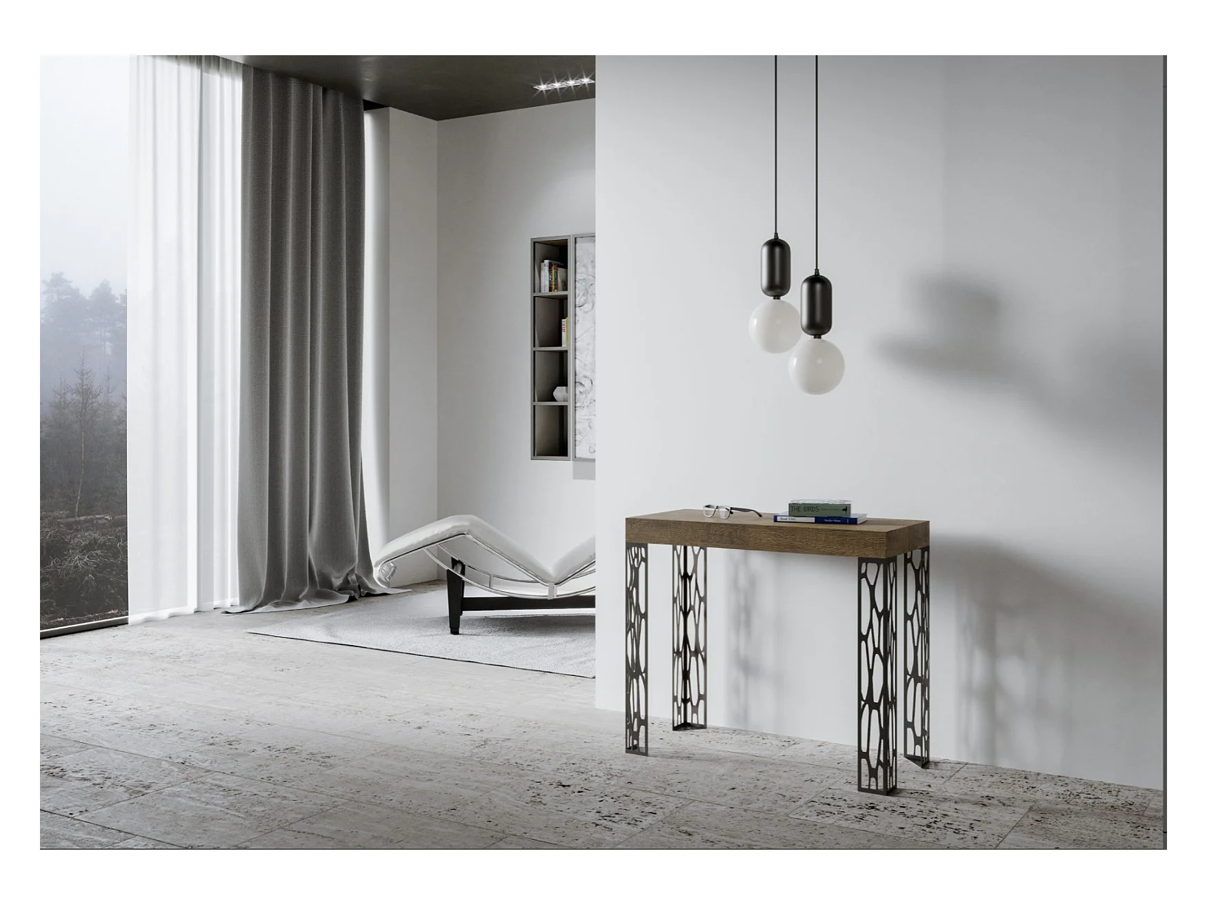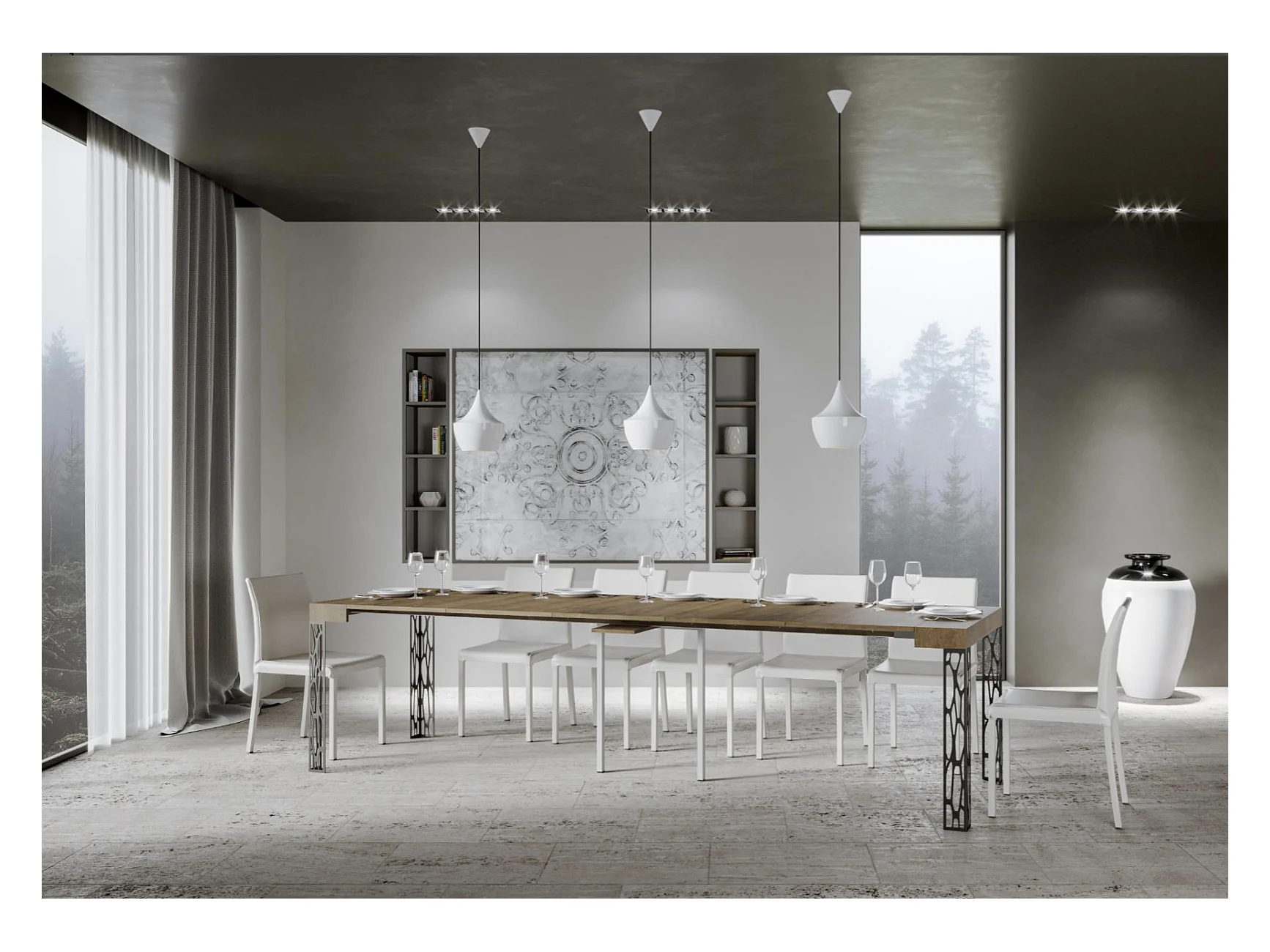 Consola extensible de diseño en madera y acero marrón Elegancia 90x40/300 cm-Color Blanco