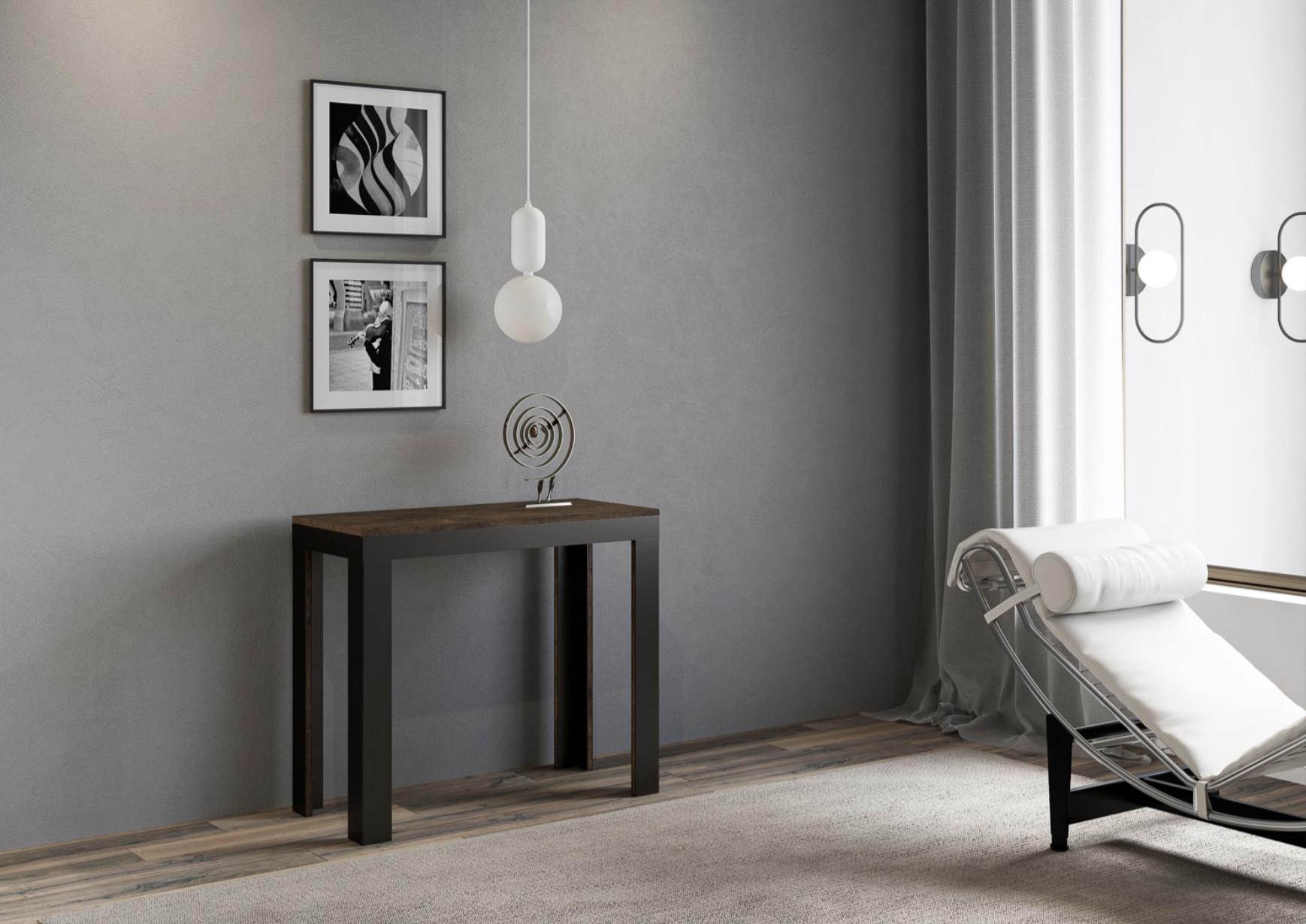 Consola extensible de diseño Diva en madera y acero marrón 90x40/196 o 90x40/300 cm-Color Marrón-3 alargaderas gruesas
