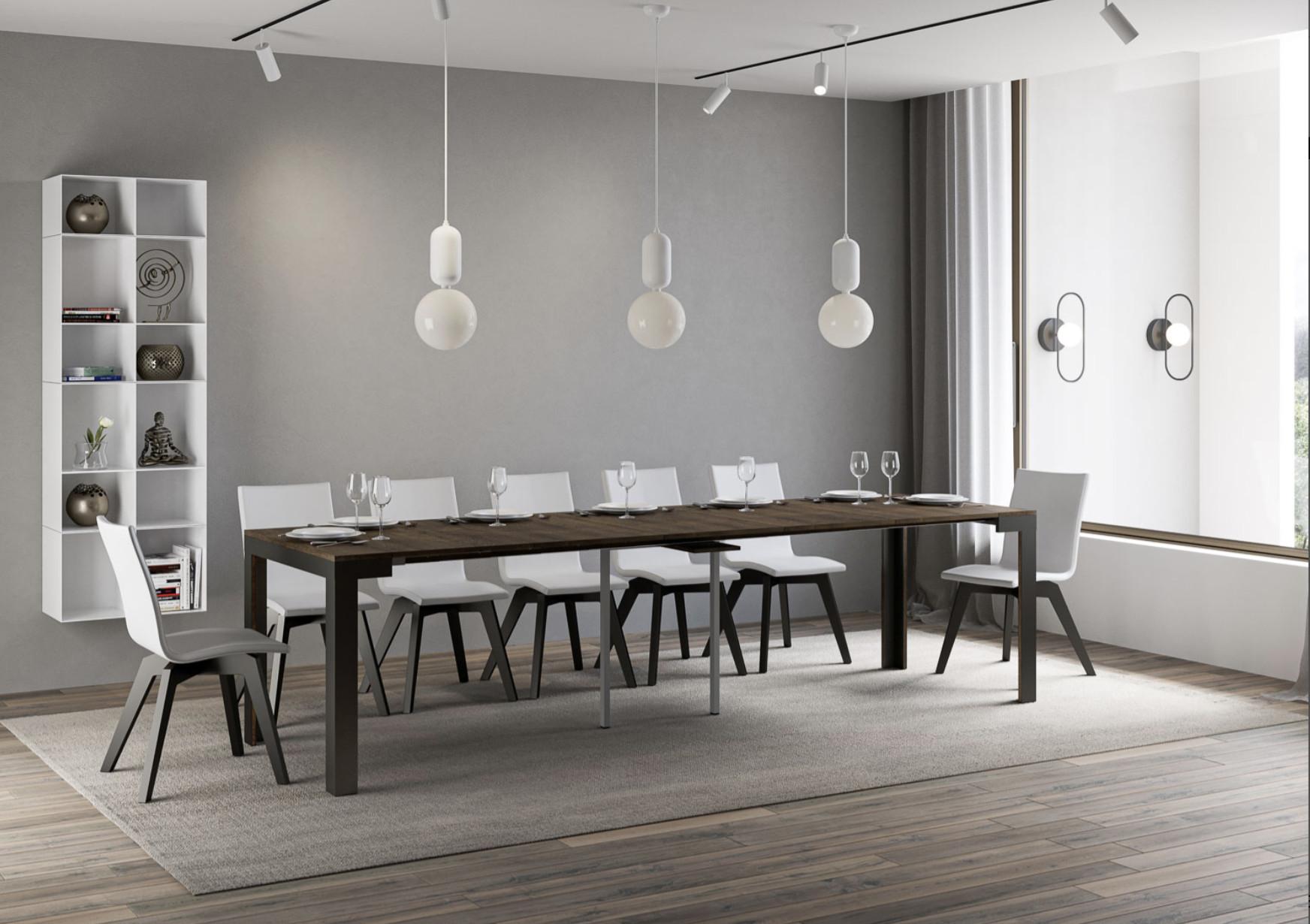 Consola extensible de madera con 4 patas antracita Liva Evolution-Color Marrón-Soporte 4 pies-Alargaderas 5 extensiones