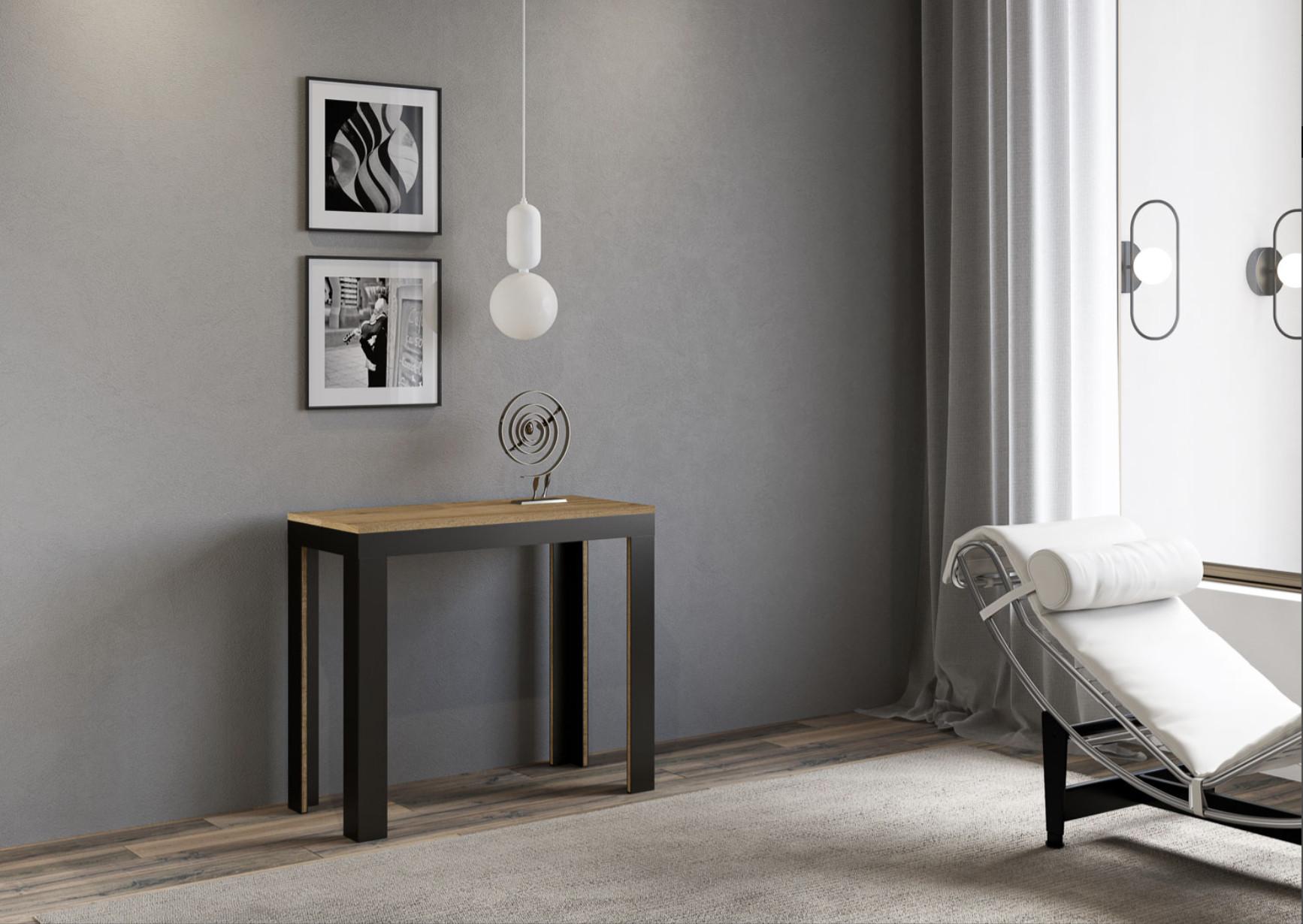 Consola extensible de madera con 4 patas de madera y acero antracita Liva-Color Marrón-Soporte 4 pies-Alargaderas 3 extensiones