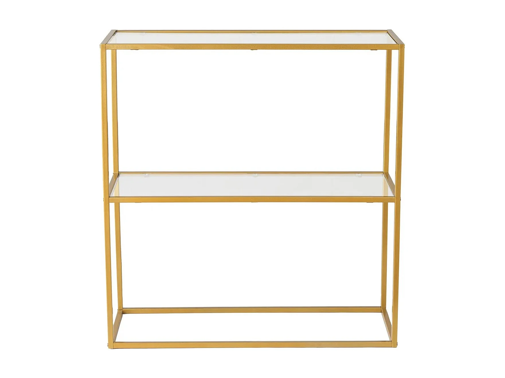 Consola de metal dorado y vidrio Léa con almacenamiento
