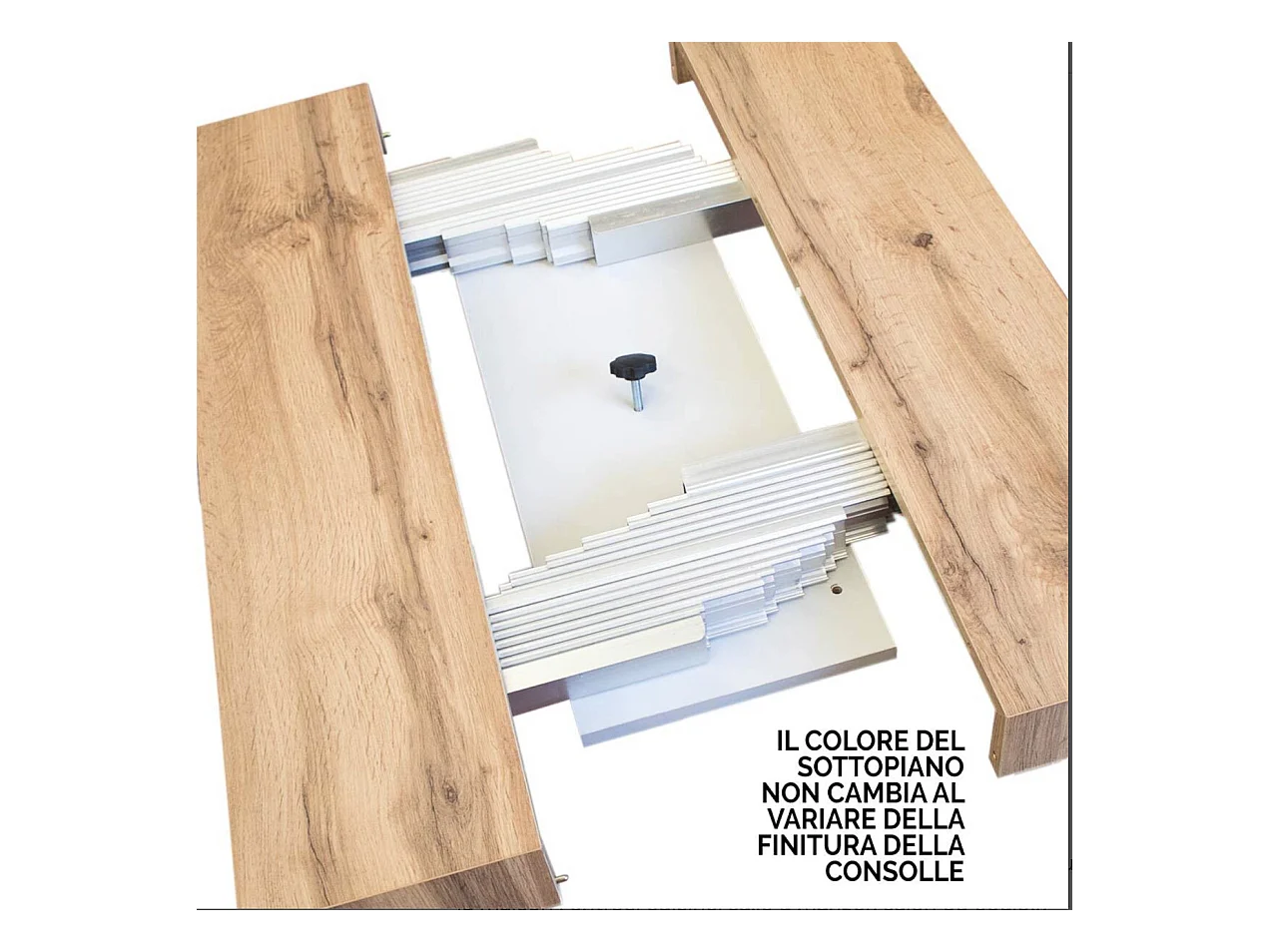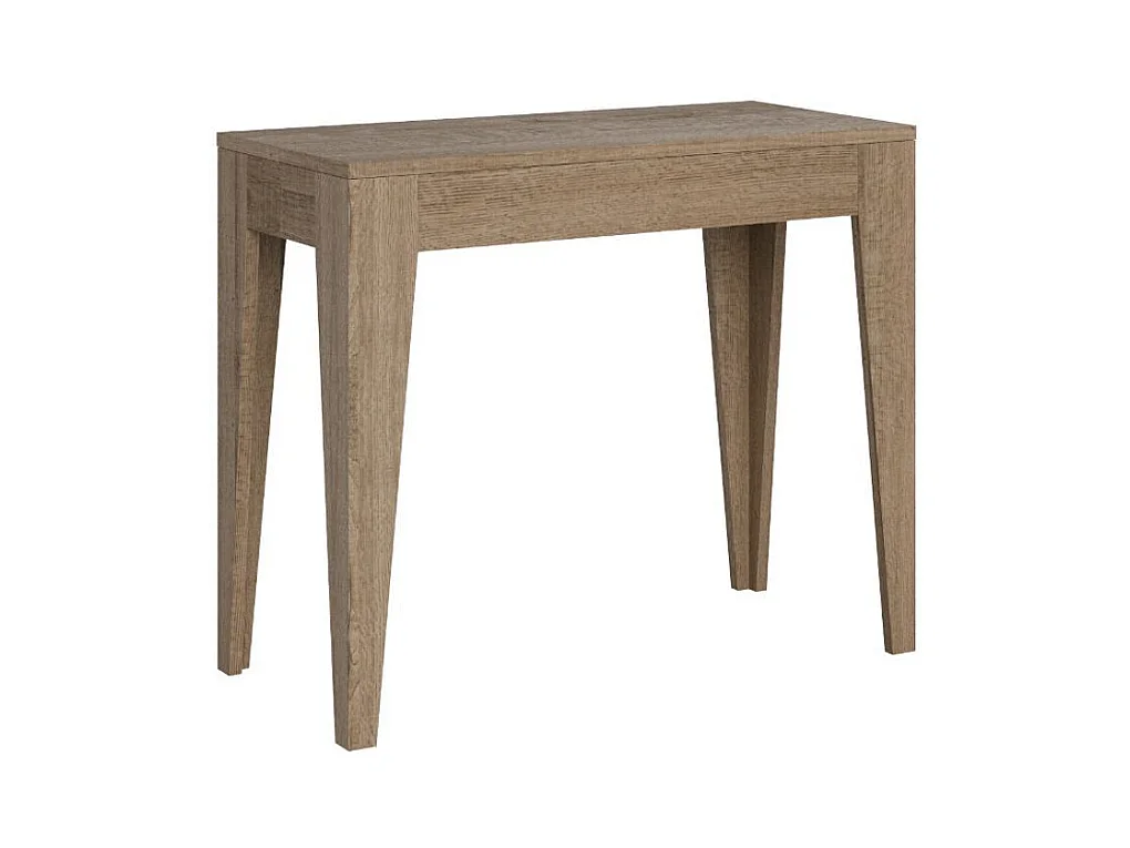 Consola Kanda moderna extensible de madera 90x42/198 o 90x42/302 cm-Color Marrón-Soporte 4 pies-Alargaderas 3 extensiones