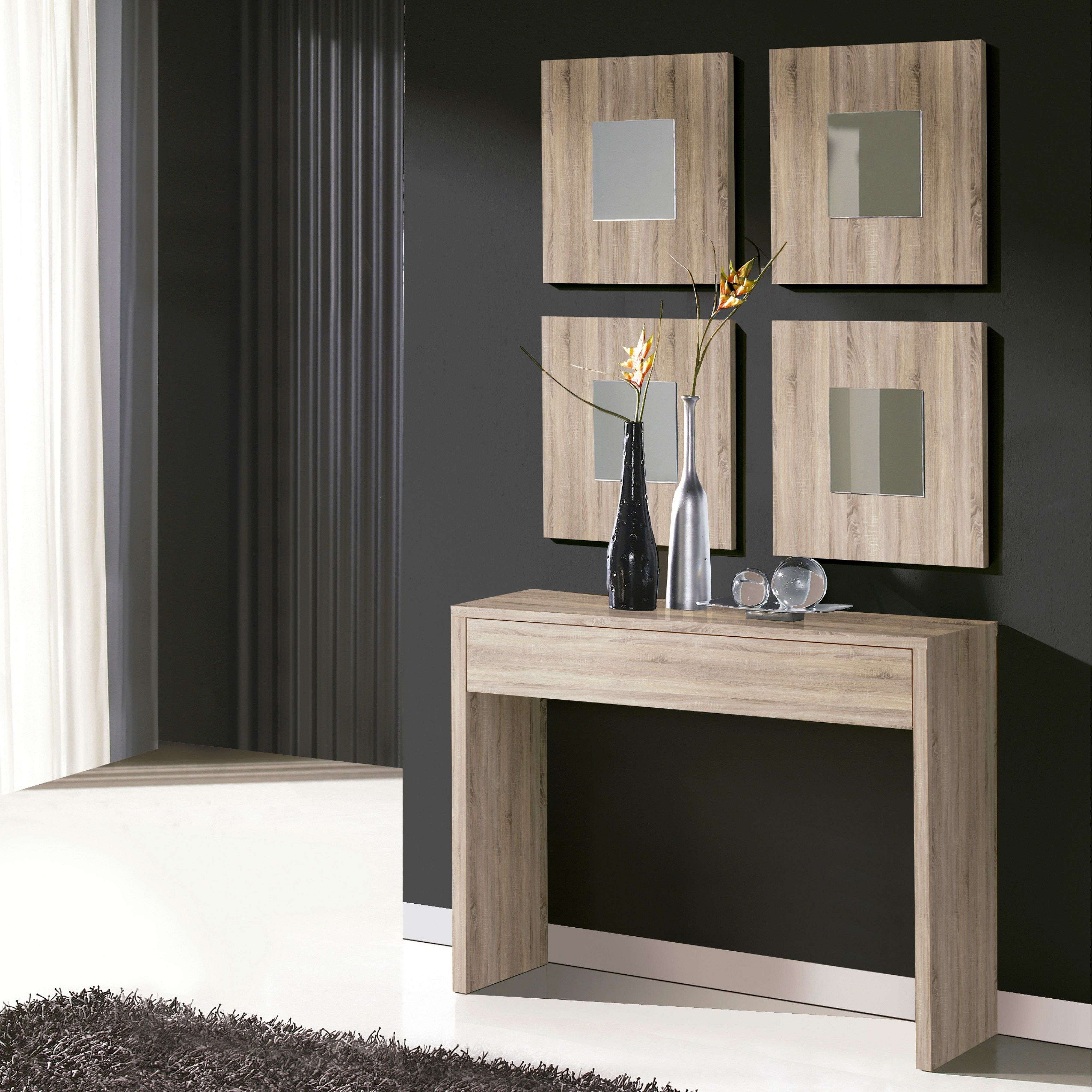 Consola Recibidor Lupe 4 Espejos 100x76x30cm Roble Cambrian