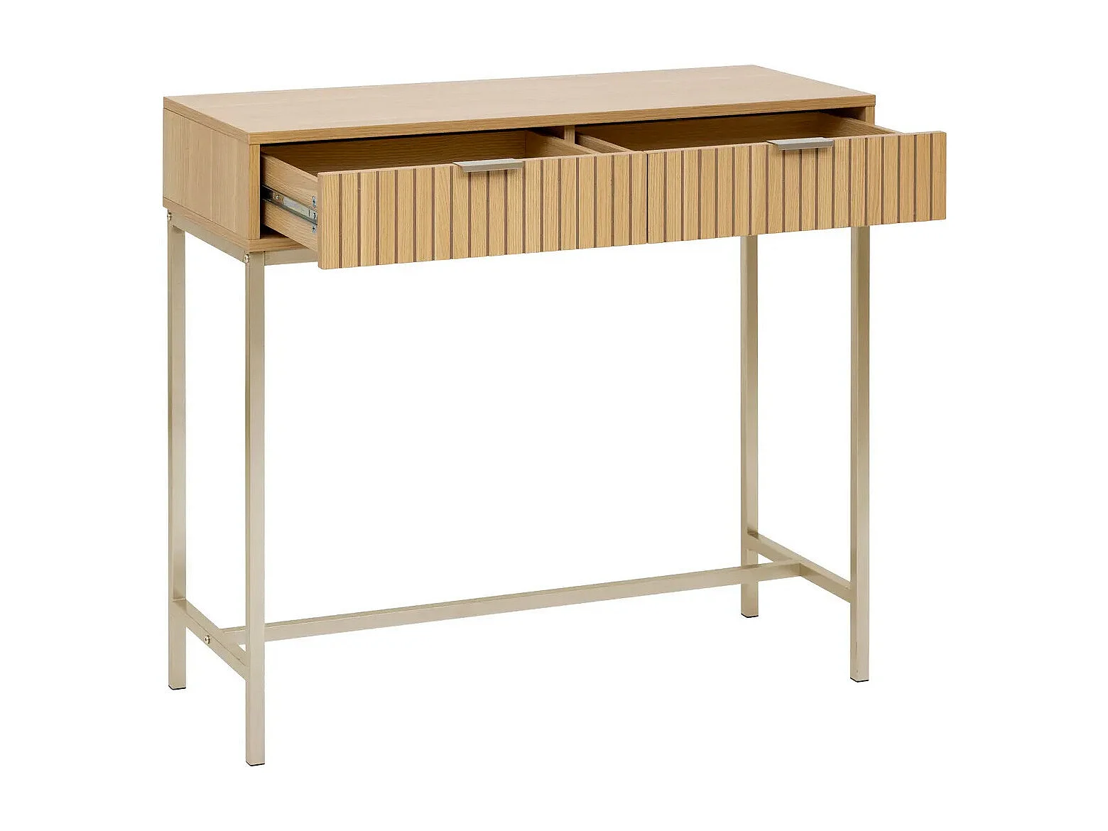 Consola Tasso 2 cajones natural/dorado 80,5x90x35 cm