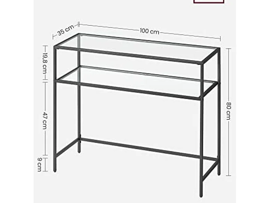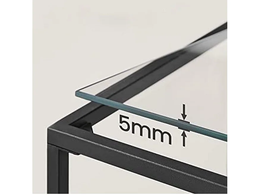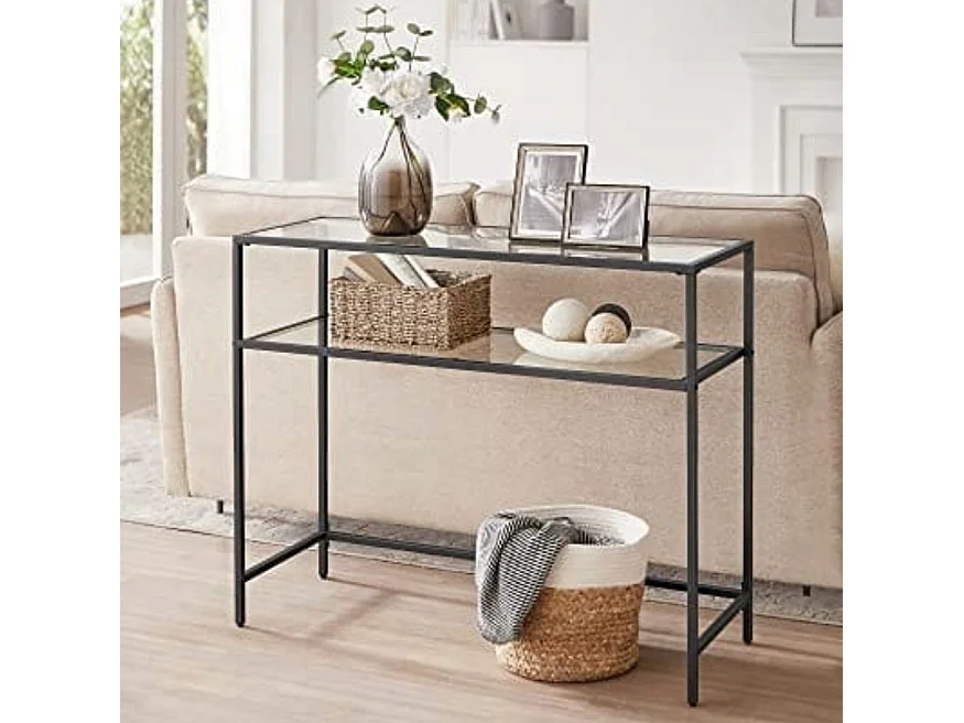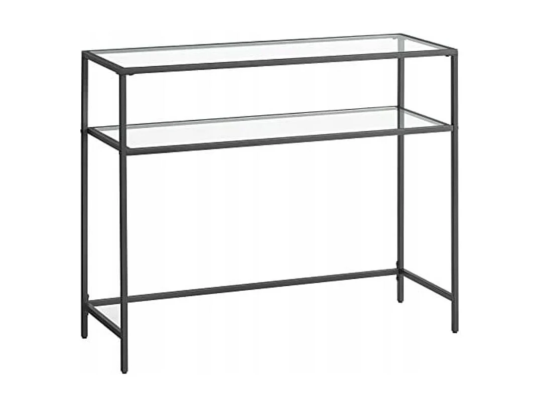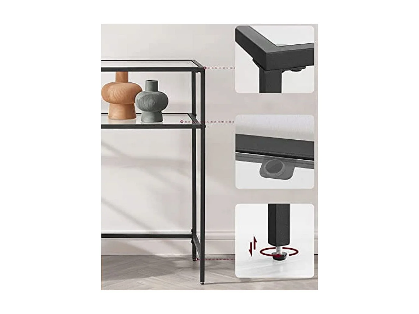 Consola Valora de vidrio negro con estantes de vidrio templado