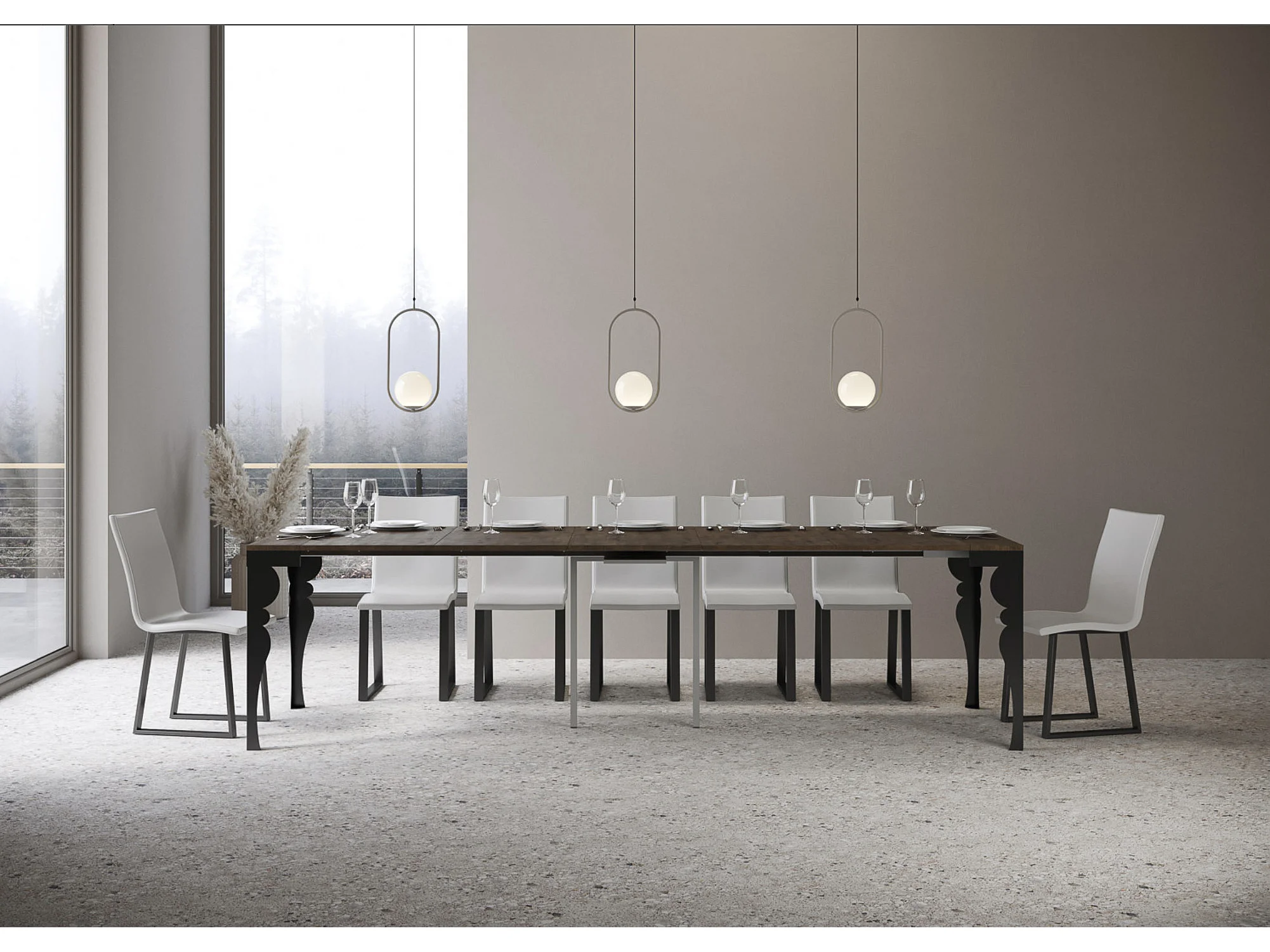 Consola vintage de 14 plazas de 40 a 306 cm Dina-Color Marrón-Soporte 4 pies-Alargaderas 5 extensiones