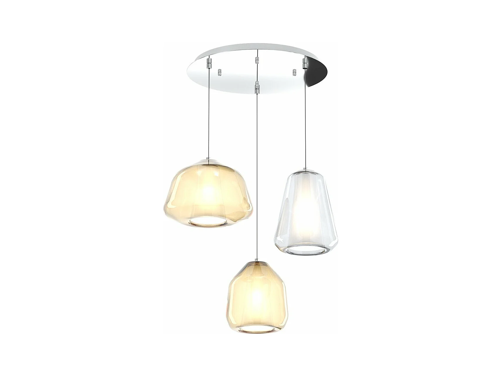 Sospensione Cromo 3 Luci Tonda Vetri Alpha Am + Beta Am + Gamma Tr
