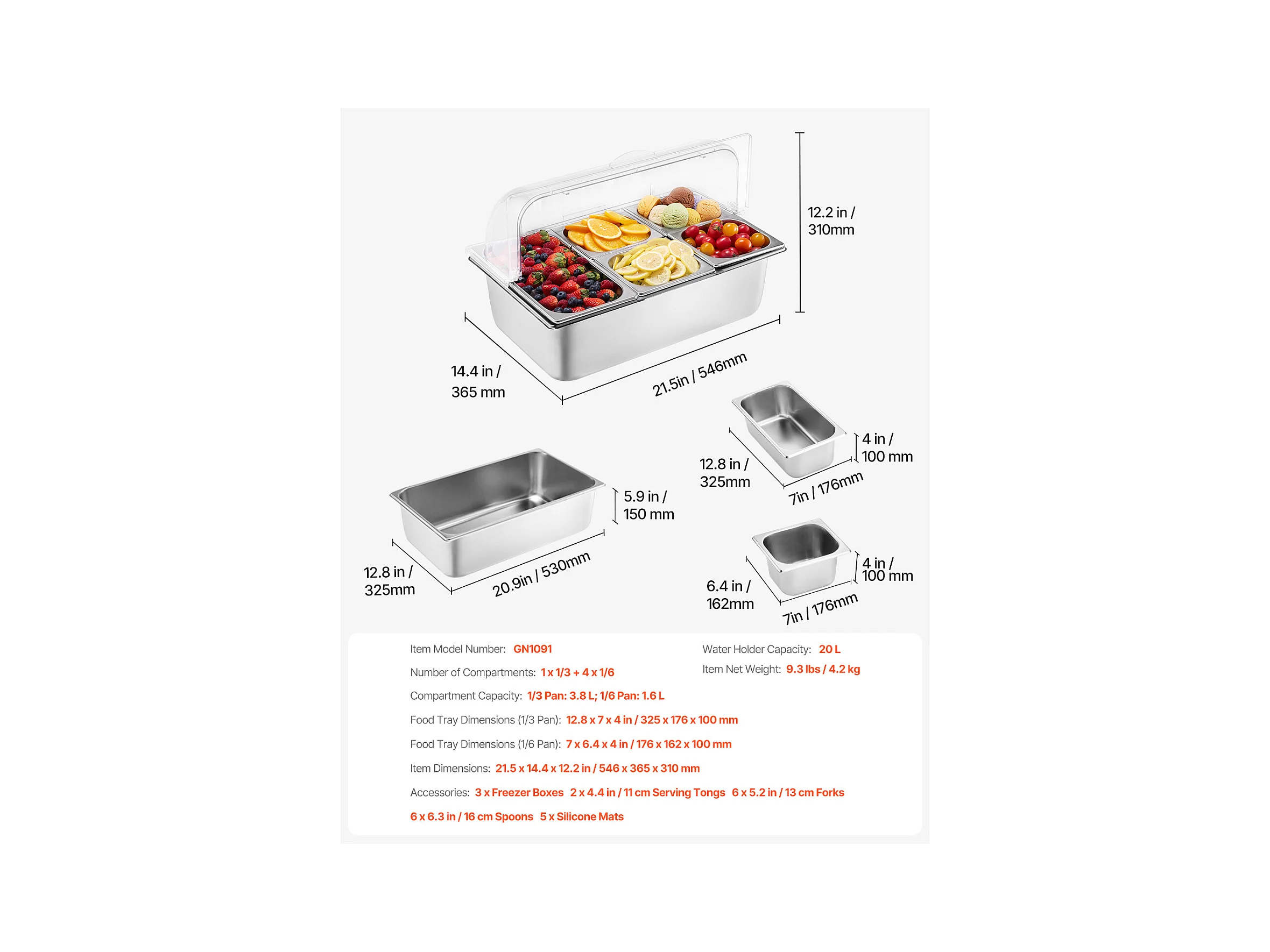 Contenedor de Exhibición Alimentaria de Mostrador SucceBuy, con Plato de 4 Recipientes de Condimentos