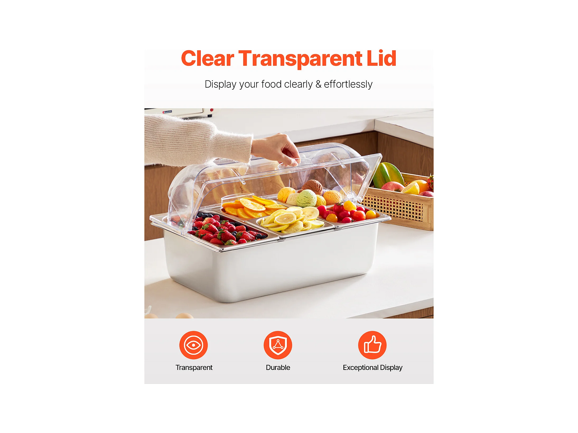 Contenedor de Exhibición Alimentaria de Mostrador SucceBuy, con Tapa para Condimentos