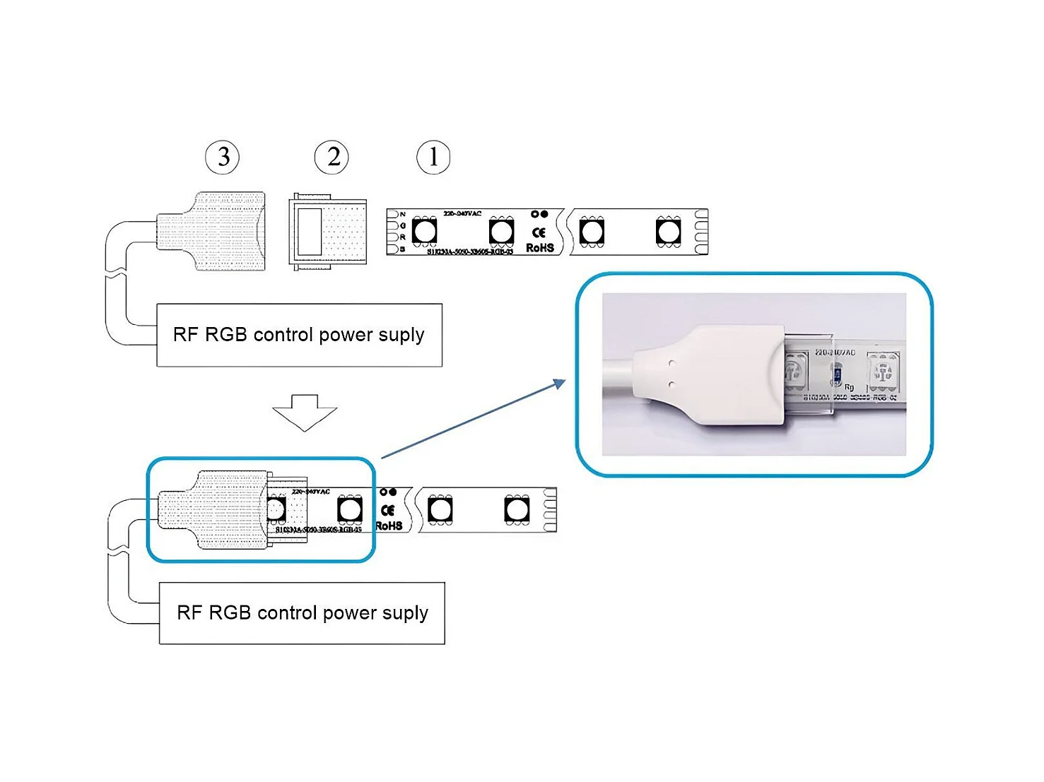 Controlador para Tira LED RGB 220V AC SMD Silicone FLEX con Mando RF Blanco