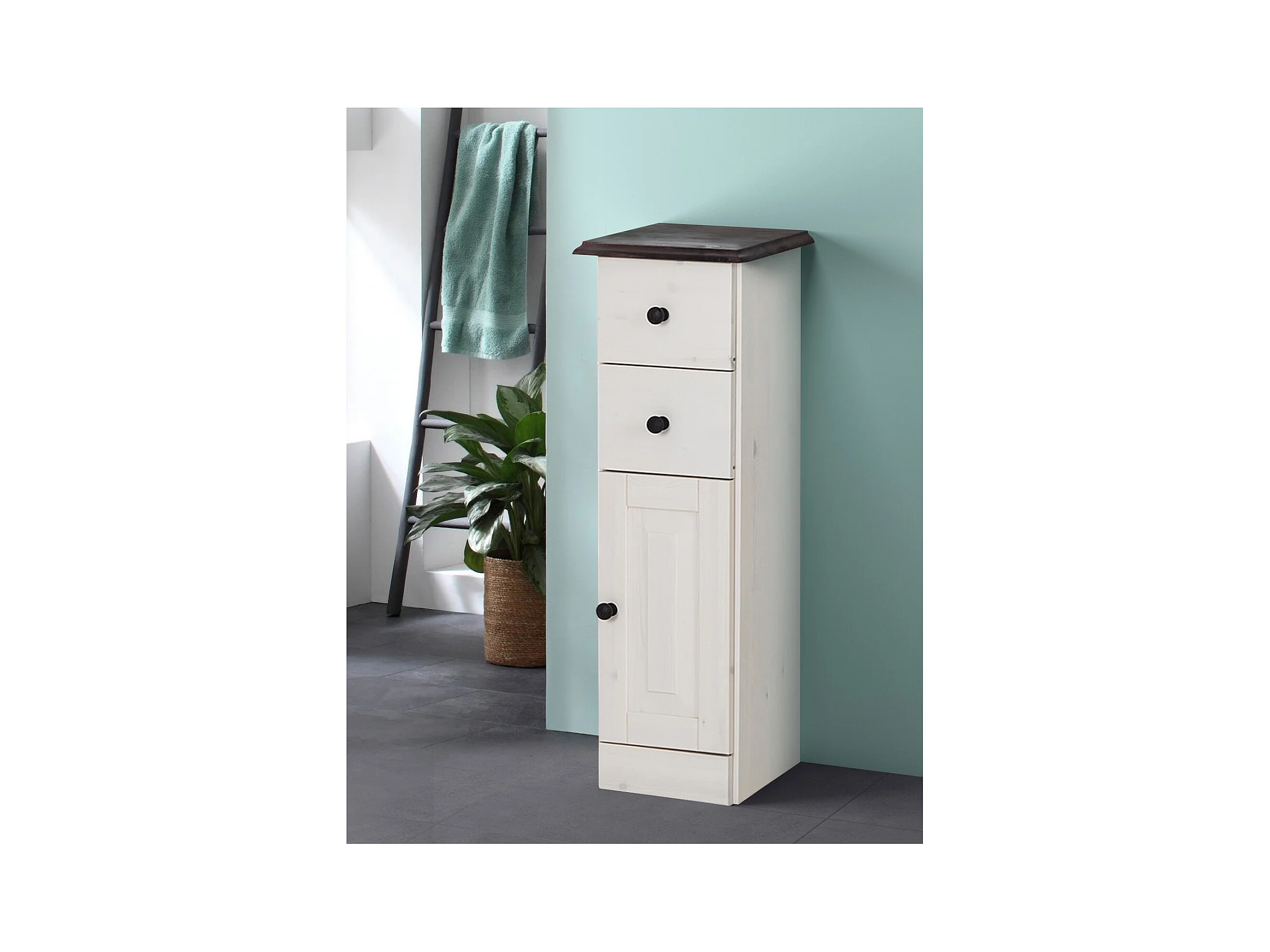 Cornelia | Armario Baño, 2 Cajones, 1 Puerta, Pino Lacado Blanco
