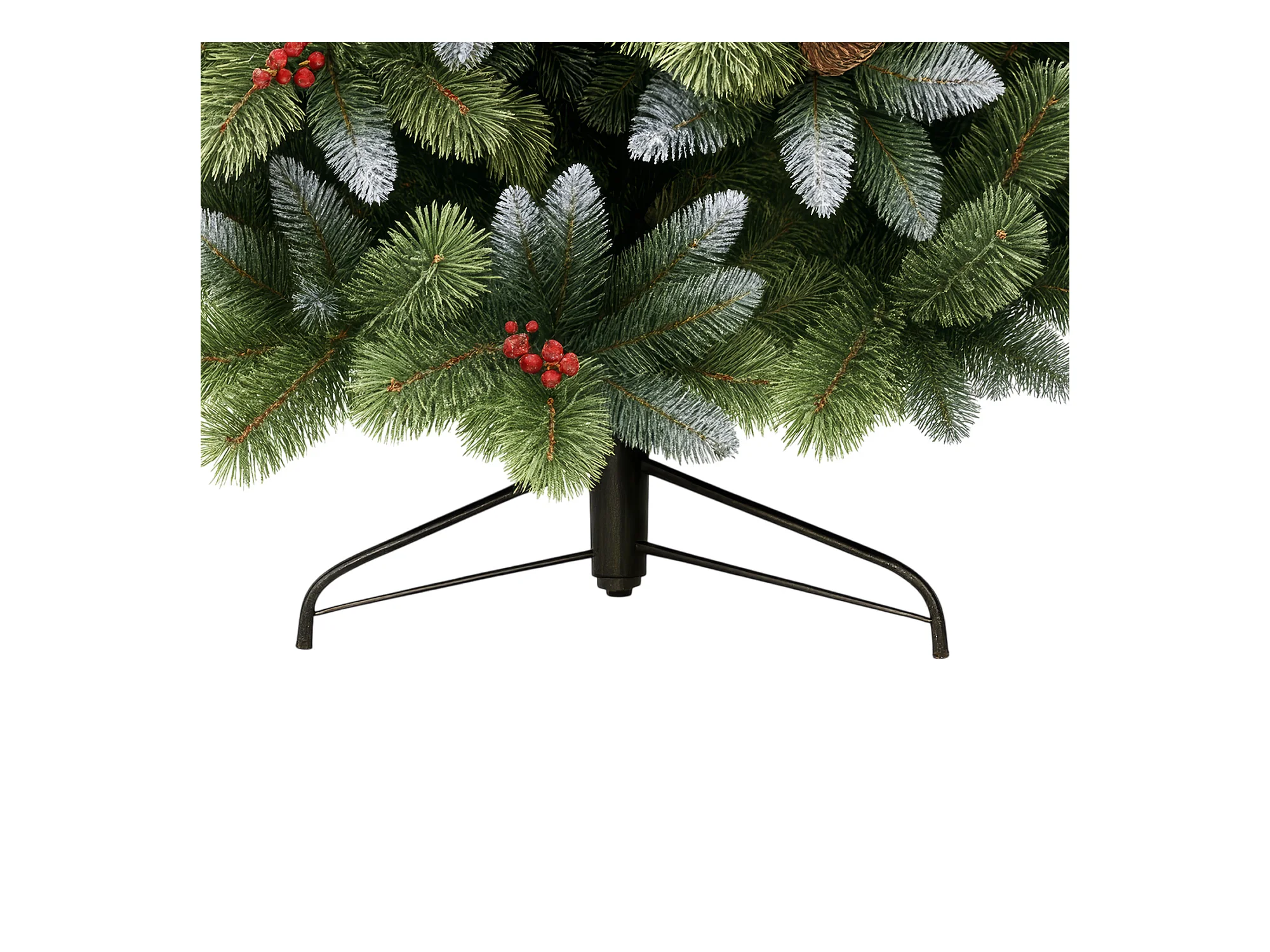 Cortina - Árbol de Navidad nevado en PVC y PP con piñas y bayas Ø99x180H, 858 puntas