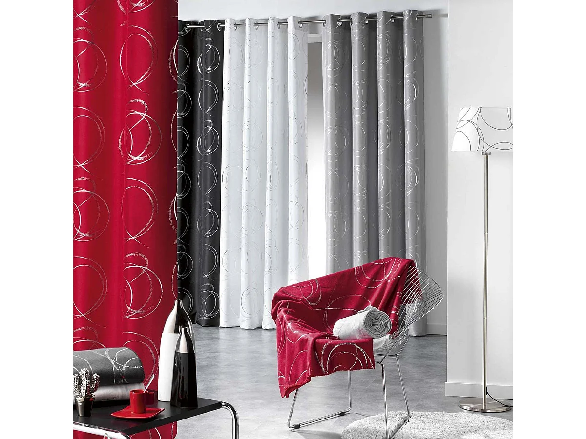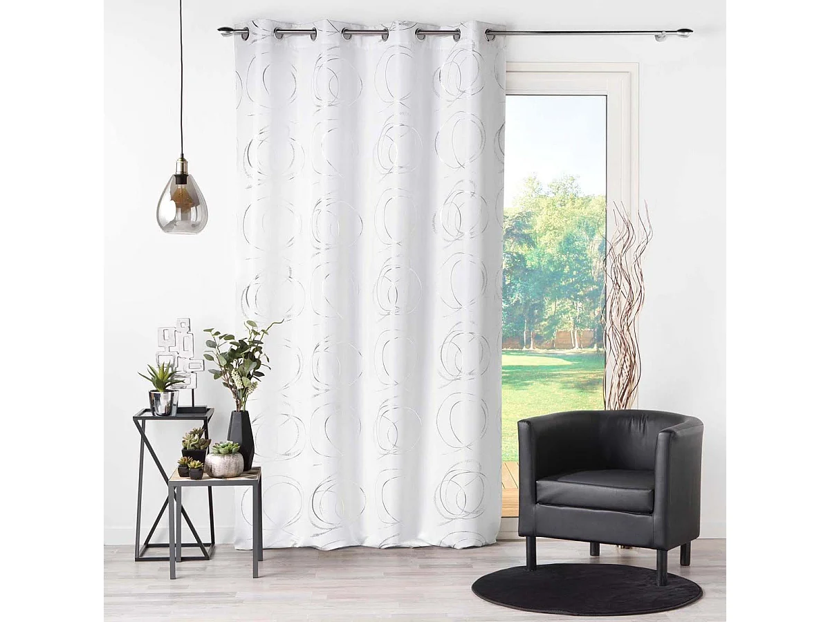 Cortina con ollaos impresión "hebillas estilizadas y argentadas 140 x 260 cm
