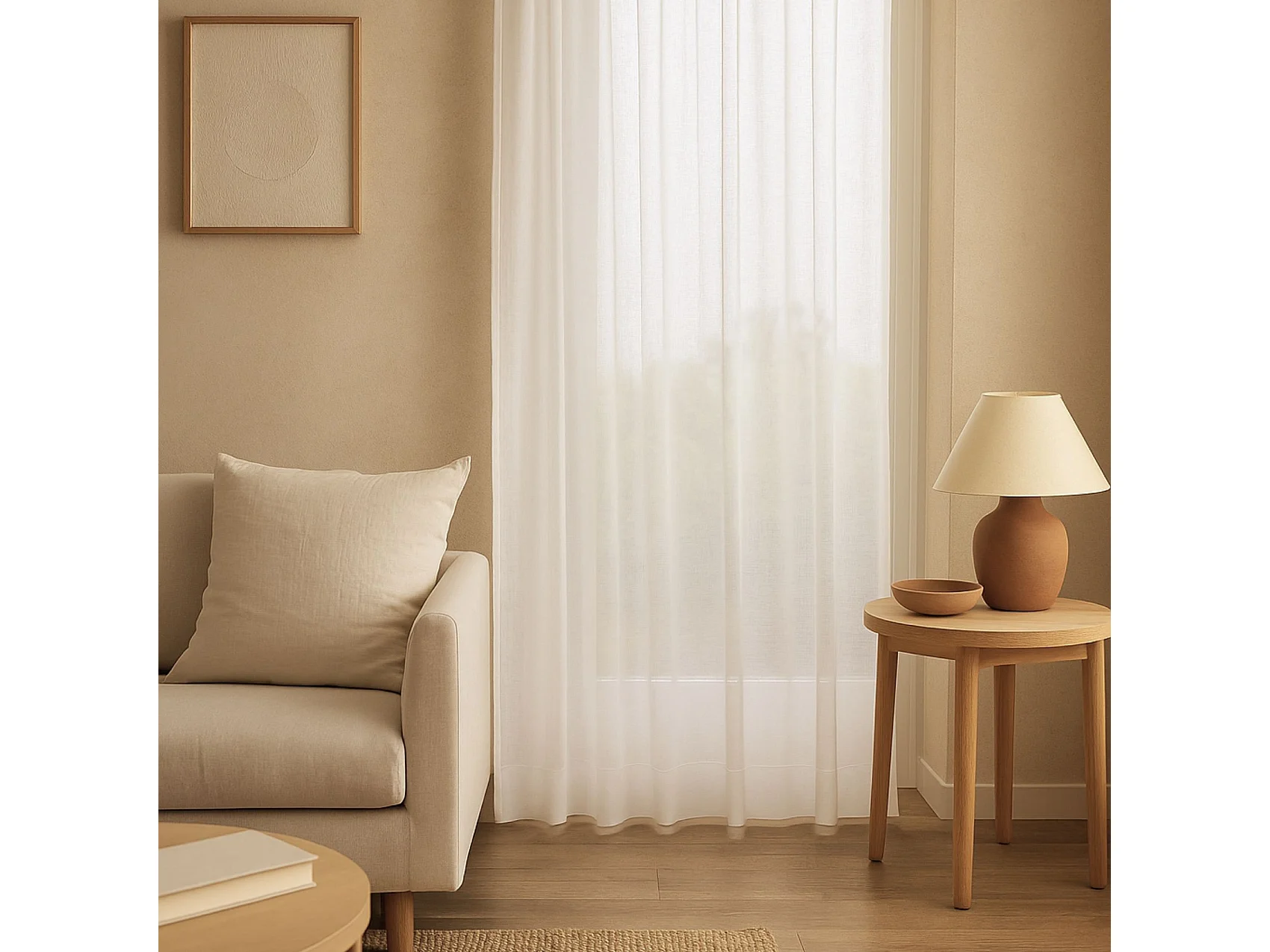 Visillo de poliéster con fondo tejido y trenza de flecos