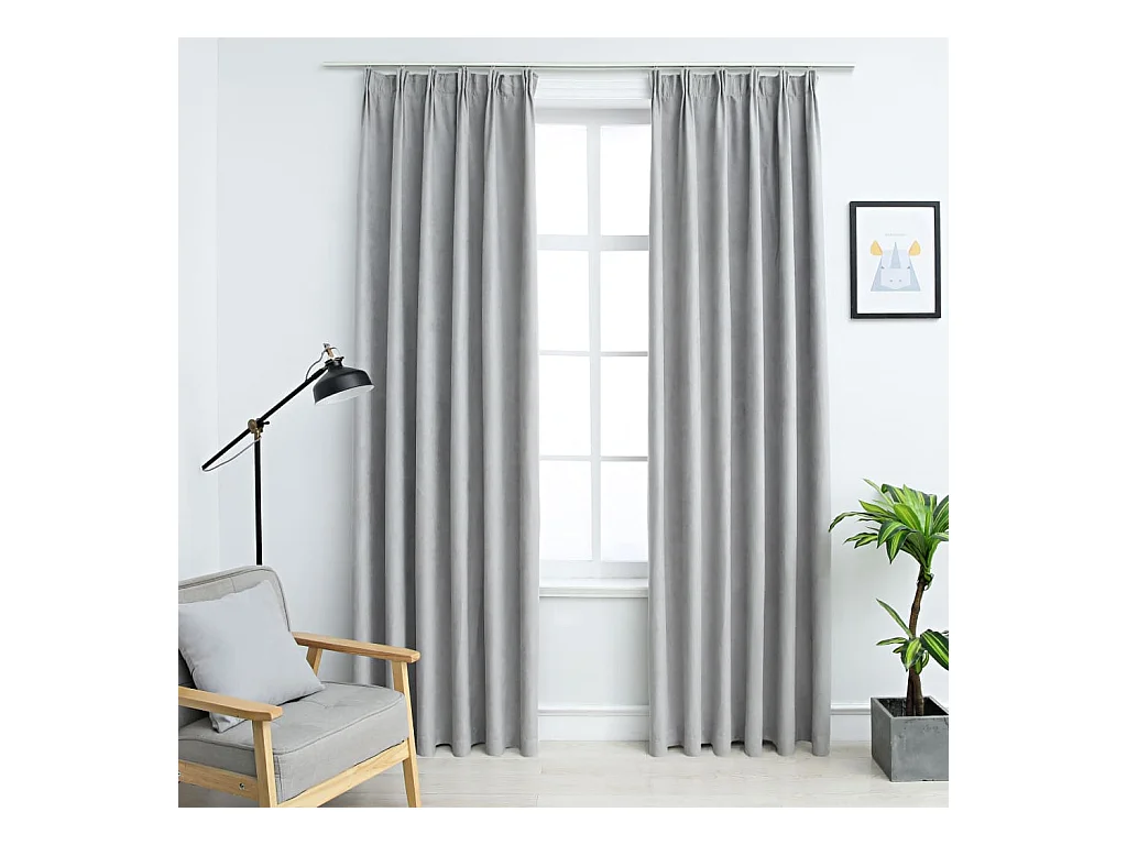 Cortinas opacas con ganchos 2 uds Gris 140x175 cm