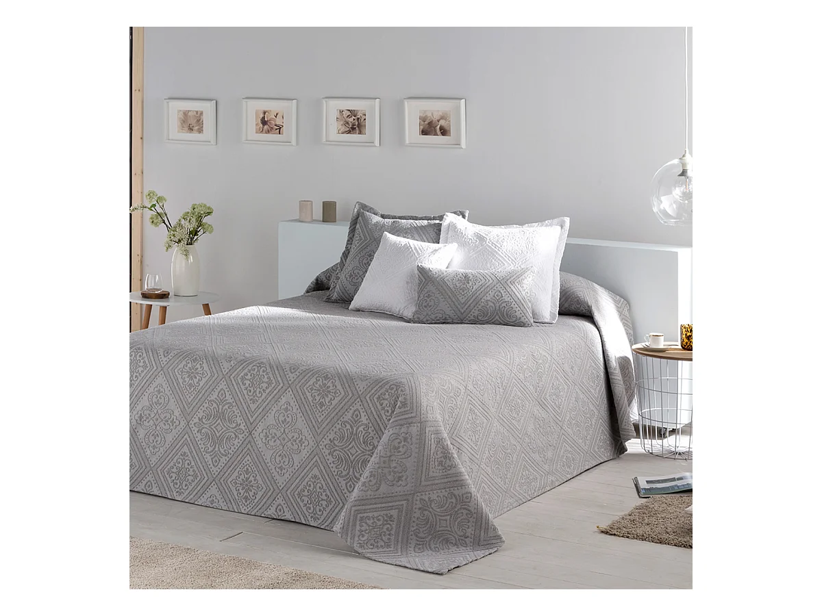 Colcha gris 230x270 cm BRIANCE de algodón suave - Diseño elegante - Fabricado en España