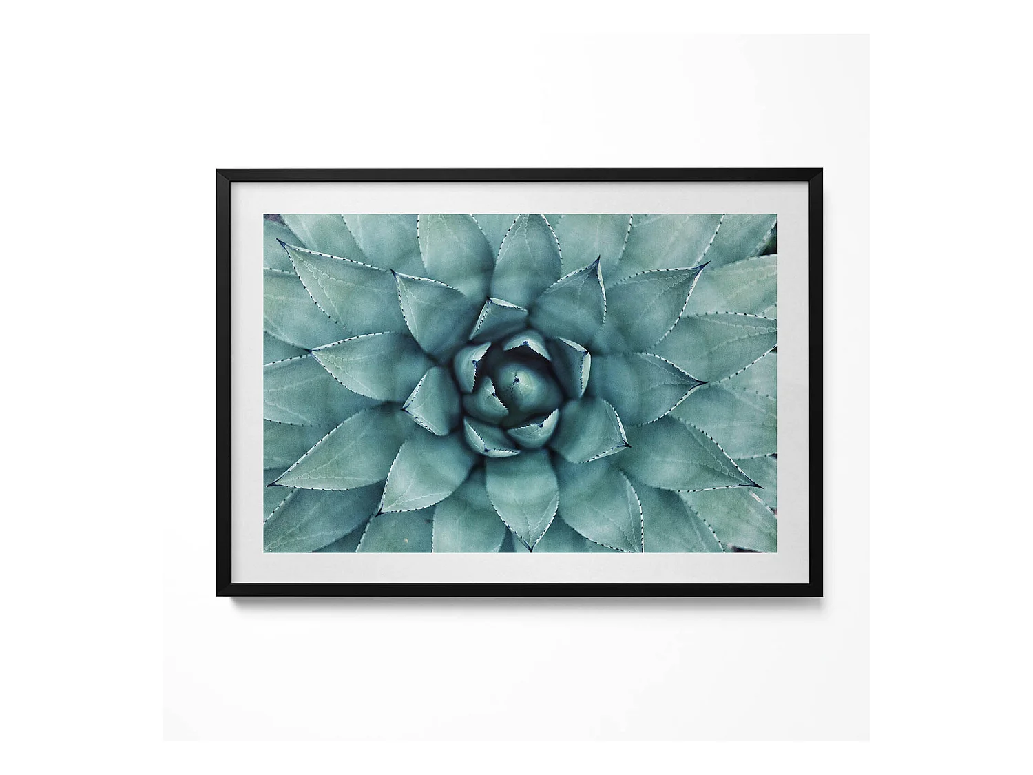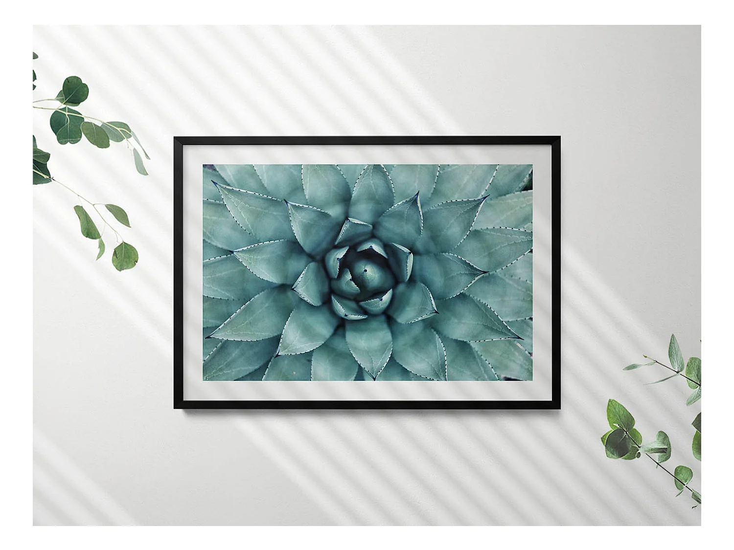Cuadro decorativo con marco negro, Planta suculenta verde 100 x 70 cm – Perfecto para el salón o el dormitorio