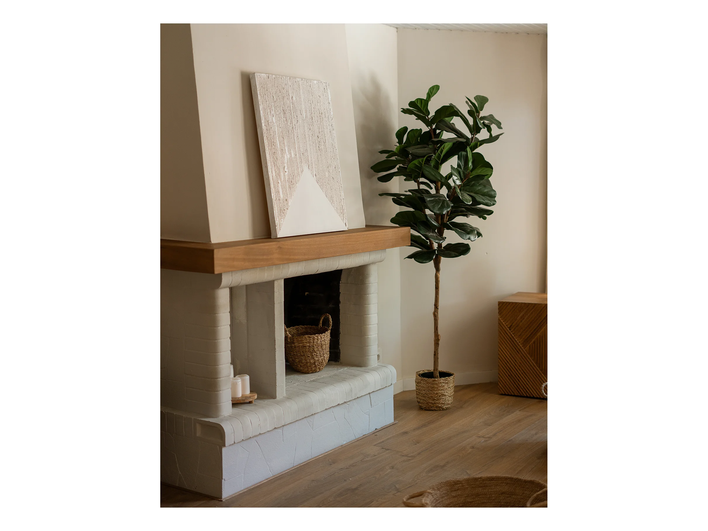 Cuadro decorativo sobre lienzo de algodón con marco de madera blanco pintado artesanalmente con pintura al oleo de 80x100cm - DEVA - DECOWOOD