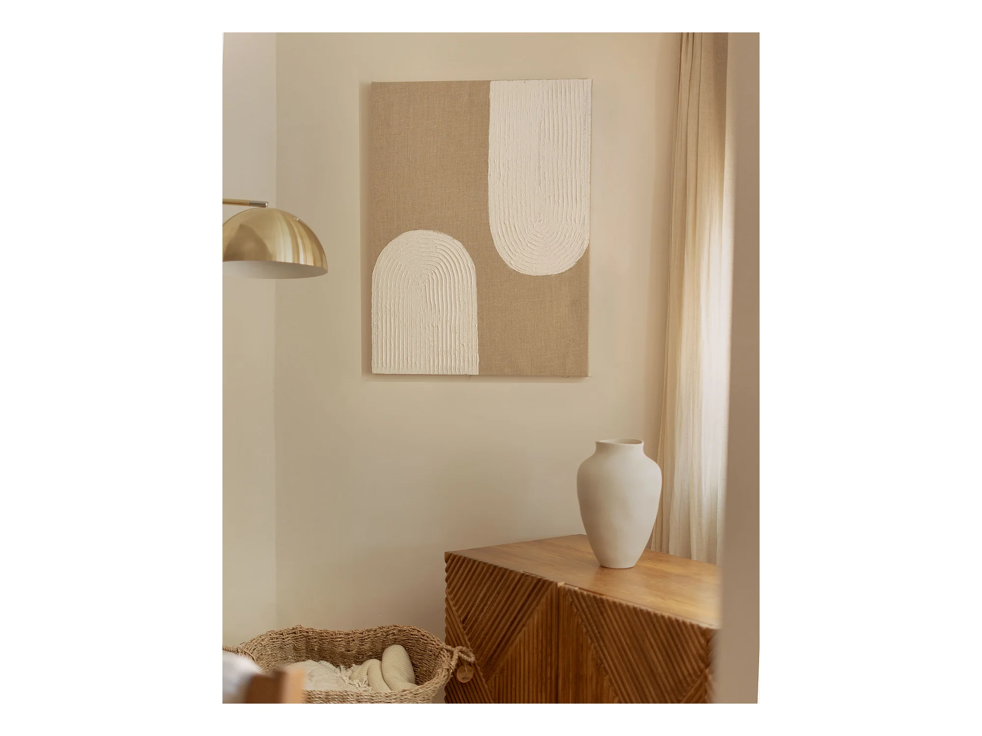 Cuadro decorativo sobre lienzo de lino con marco de madera blanco pintado artesanalmente con pintura al oleo de 80x100cm - NIMBA - DECOWOOD