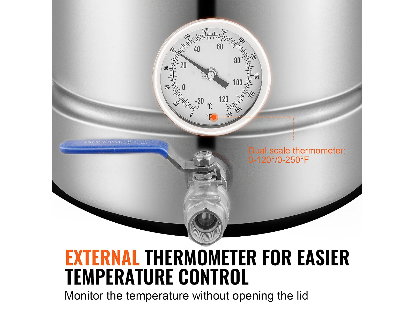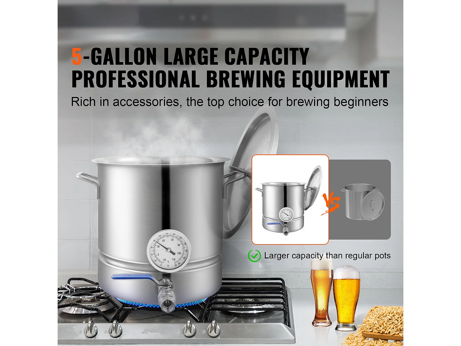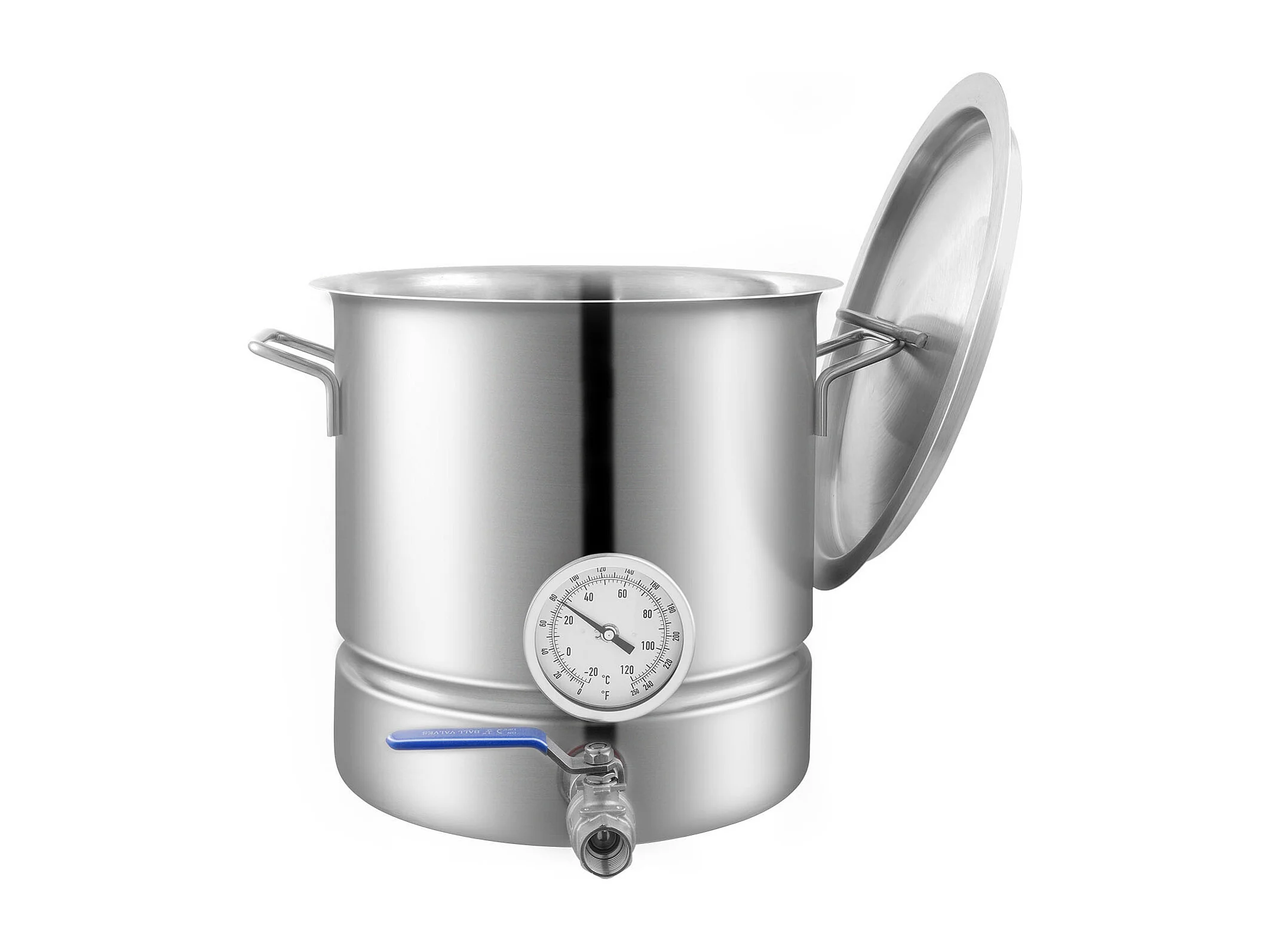 Caldera de Elaboración de Cerveza SucceBuy de Acero Inoxidable de 19L, Hervidor de Fondo Triple, Suministros de Elaboración de Cerveza Casera, Tapa, Termómetro
