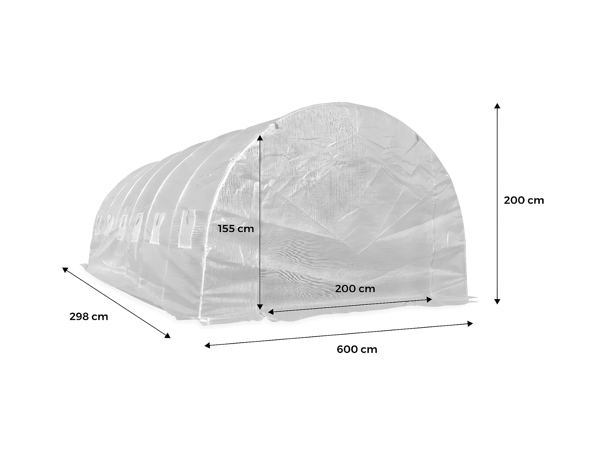 Invernadero túnel de alta resistencia con 6 ventanas, puerta enrollable, lona reforzada, anclajes al suelo, verde (300x200x195cm)