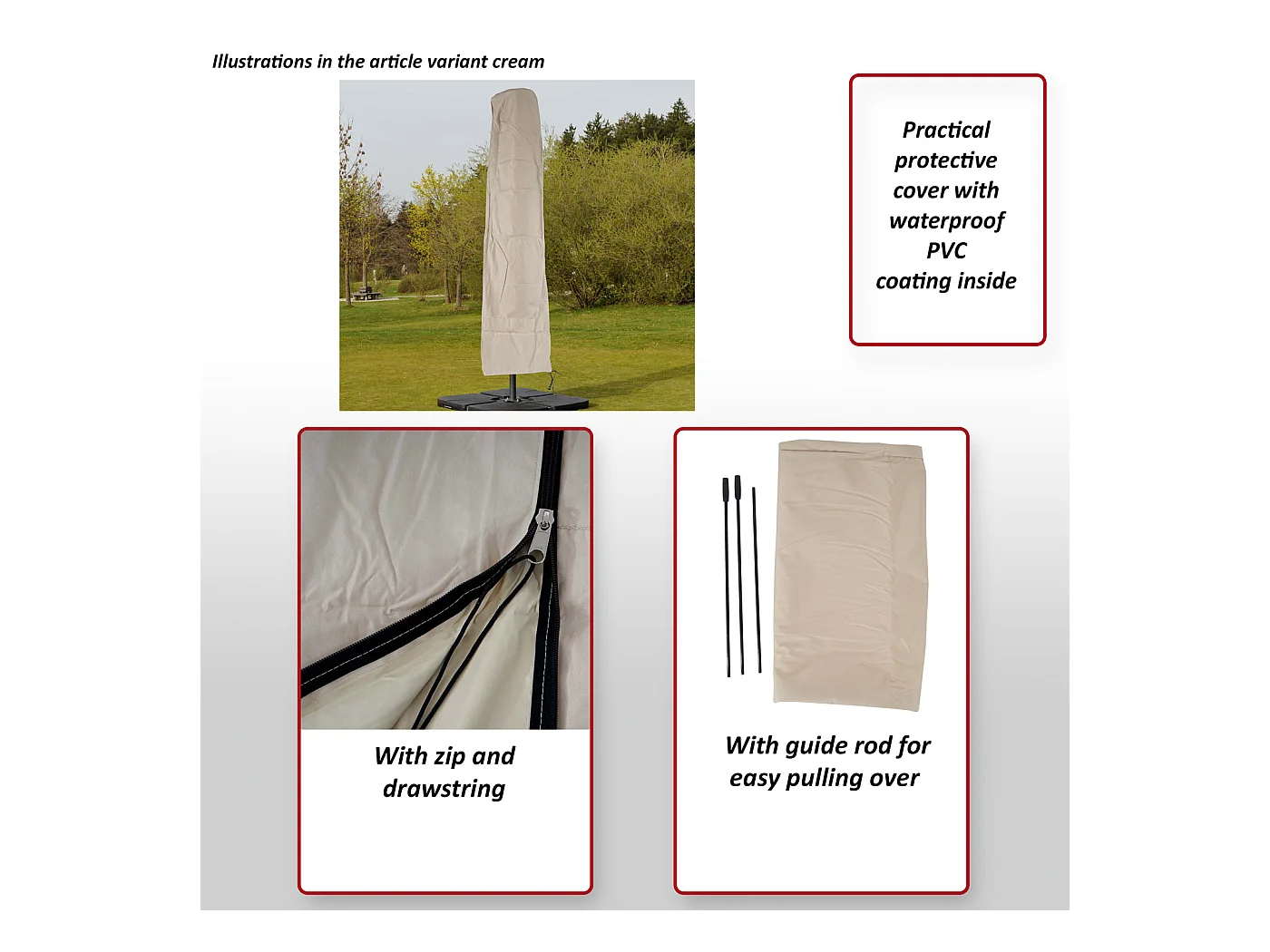 Cubierta protectora MCW para parasol voladizo de hasta 3,5 m, crema