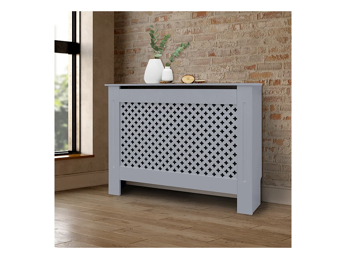 ECD Germany Cubierta para radiador 112x19x82cm MDF lacado gris diseño de láminas mueble protector vintage con acabado mate para calefacción de pared