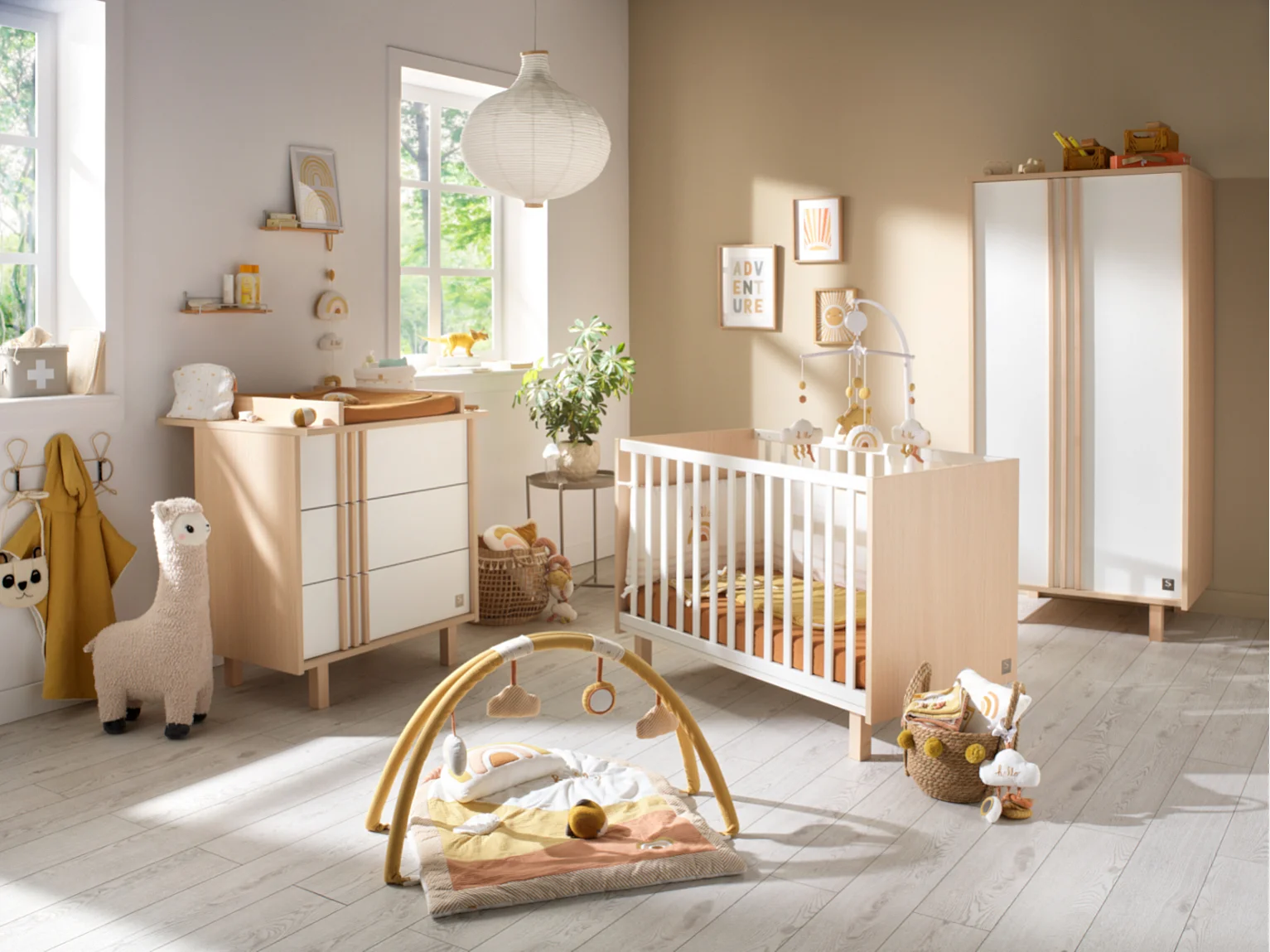 Cuna de 120x60 con patas de roble aterciopelado y balaustres blancos