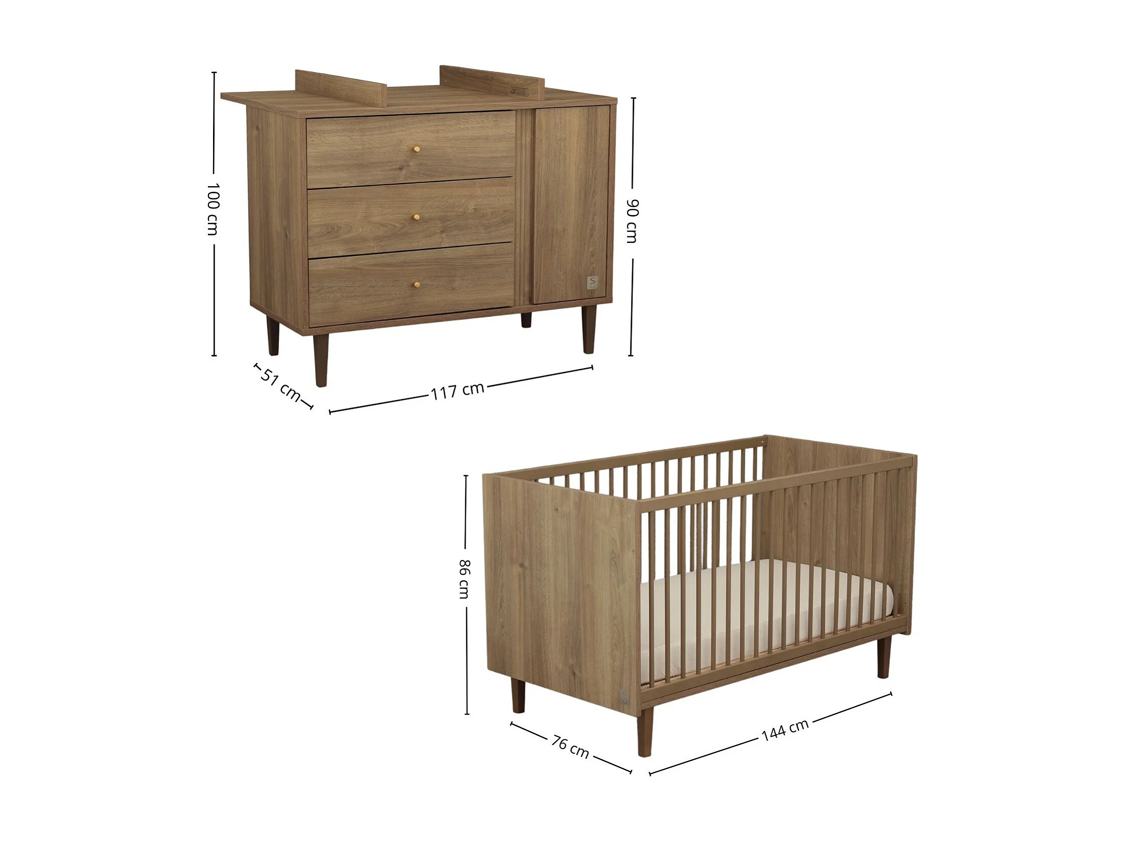 Cuna evolutiva Mokka, Cama evolutiva 140x70 y cómoda - Chêne Mokka