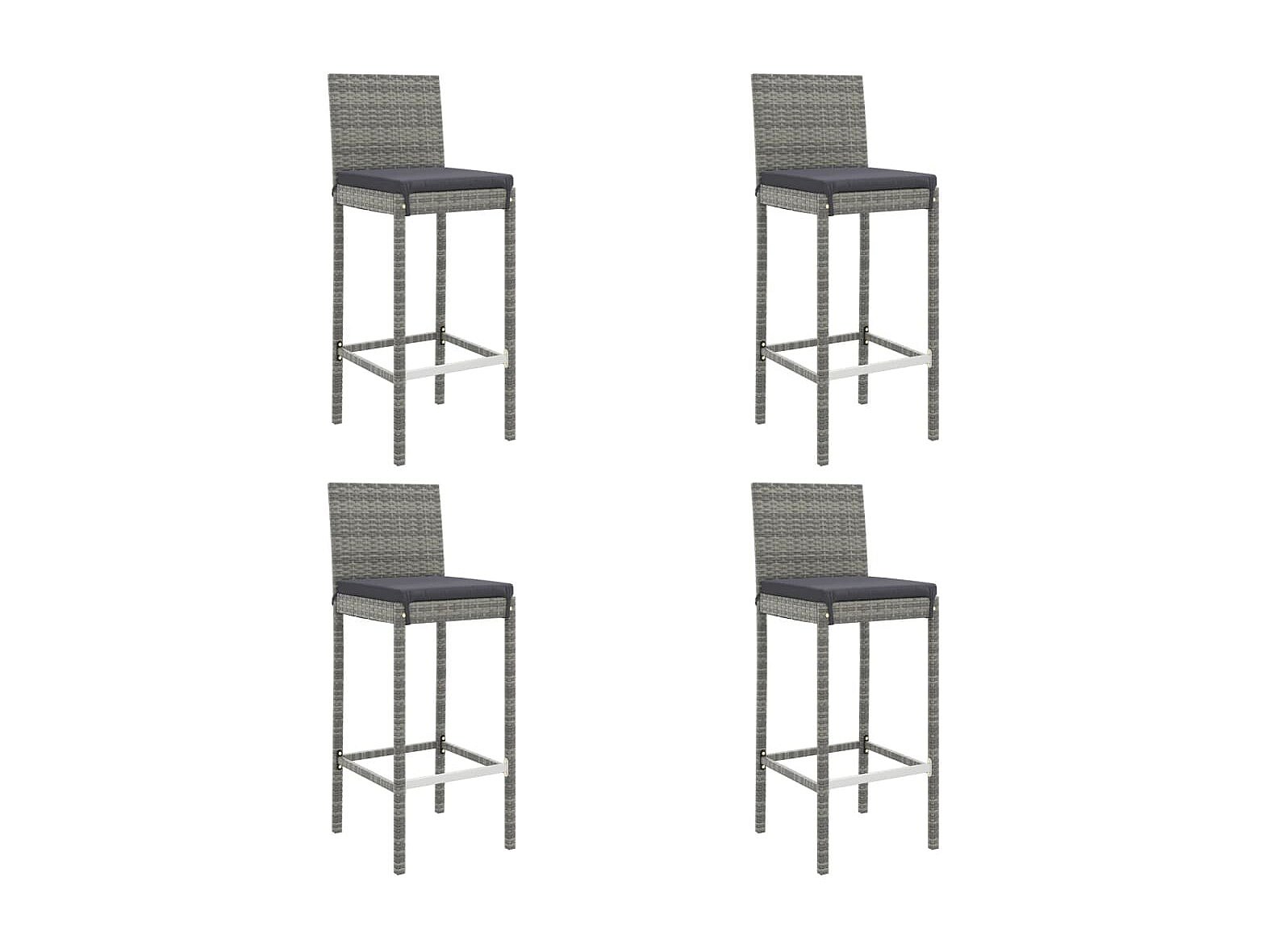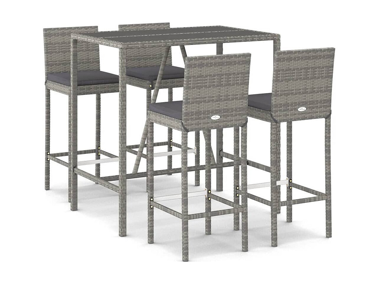 Danick Mesa y taburetes altos jardín 5 piezas y cojines ratán PE gris