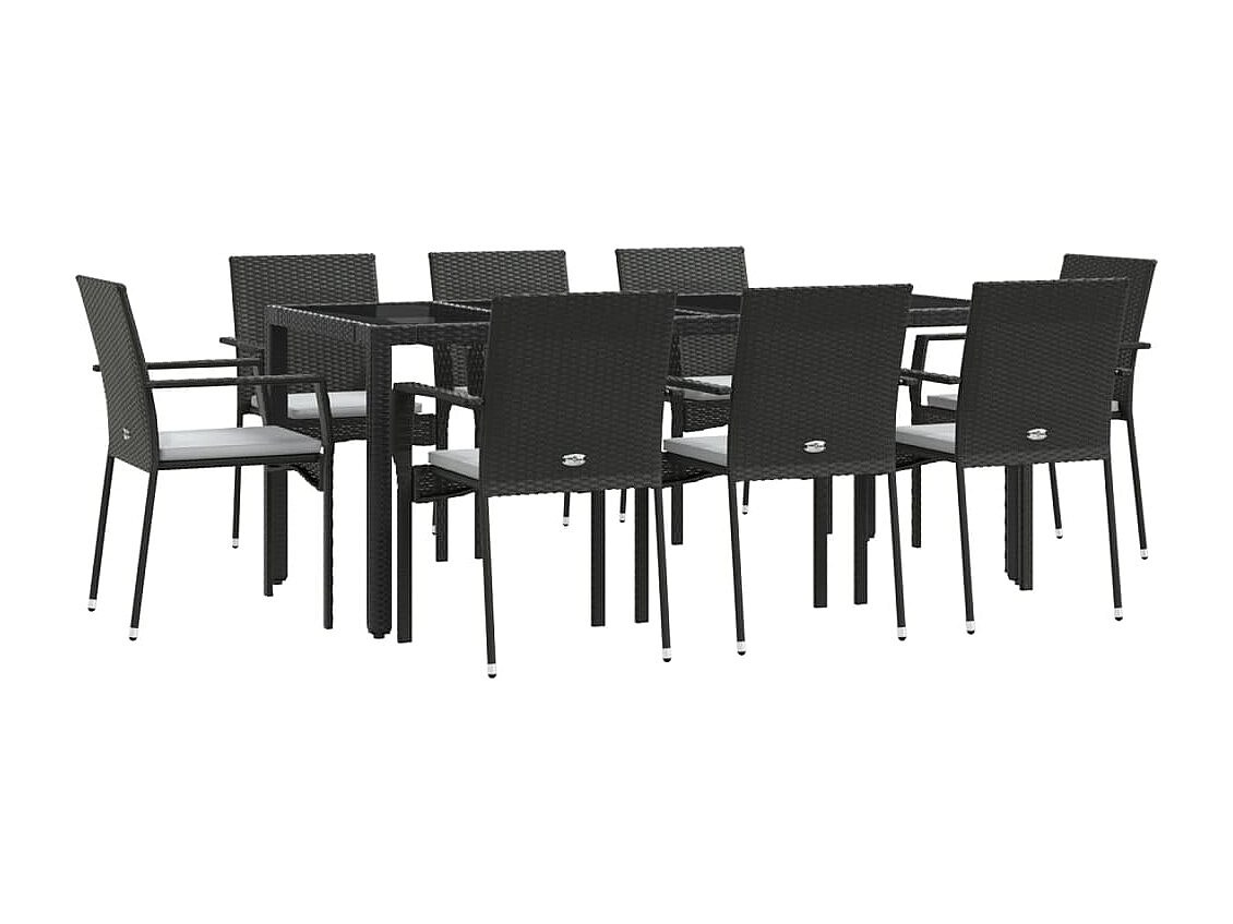 Emory Set de comedor de jardín 9 pzas y cojines ratán sintético negro