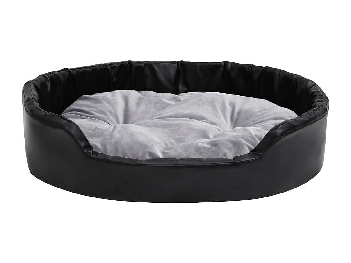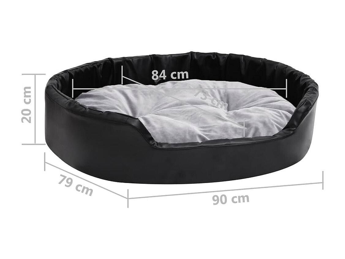 Davidson Cama para perros felpa y cuero sintético negro gris 90x79x20 cm