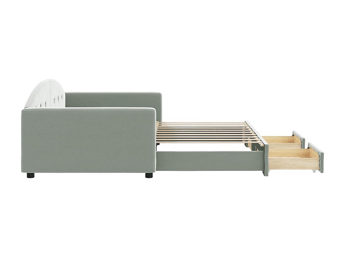 Daybed con nido y cajones gris claro 90x190cm terciopelo