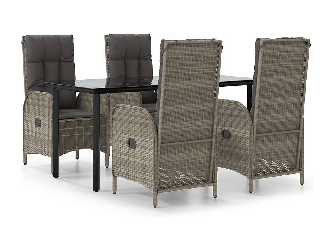 Albert Set comedor jardín 5 pzas y cojines ratán sintético negro gris