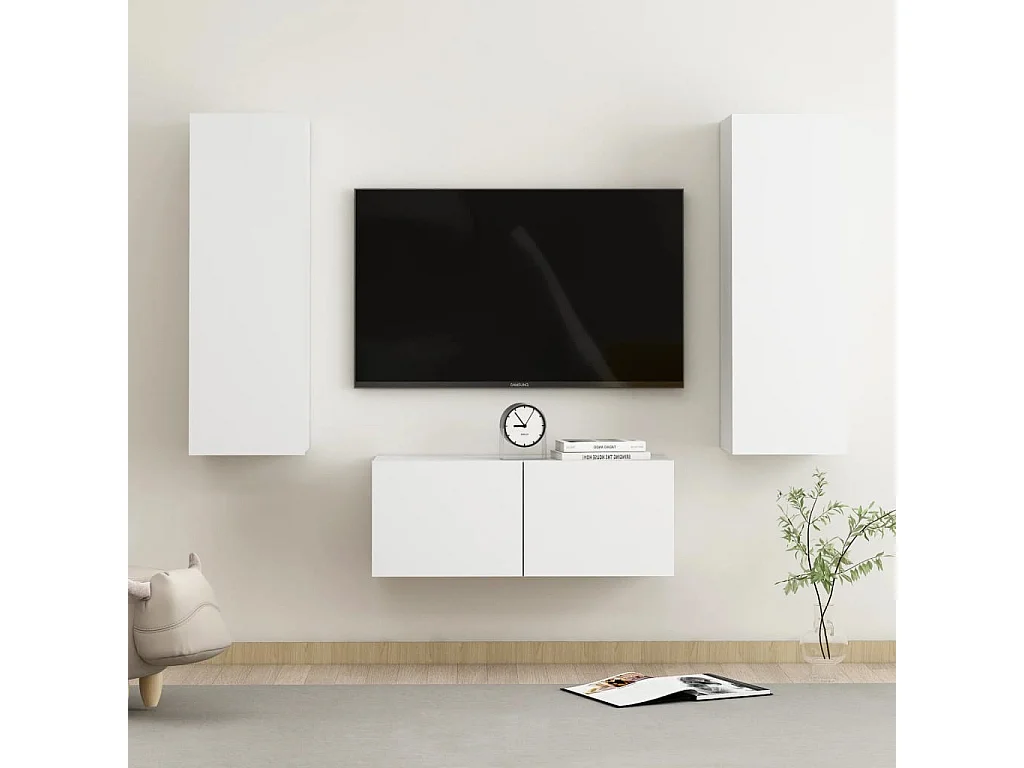 Deadwood Set de muebles de salón TV 3 piezas madera de ingeniería blanco