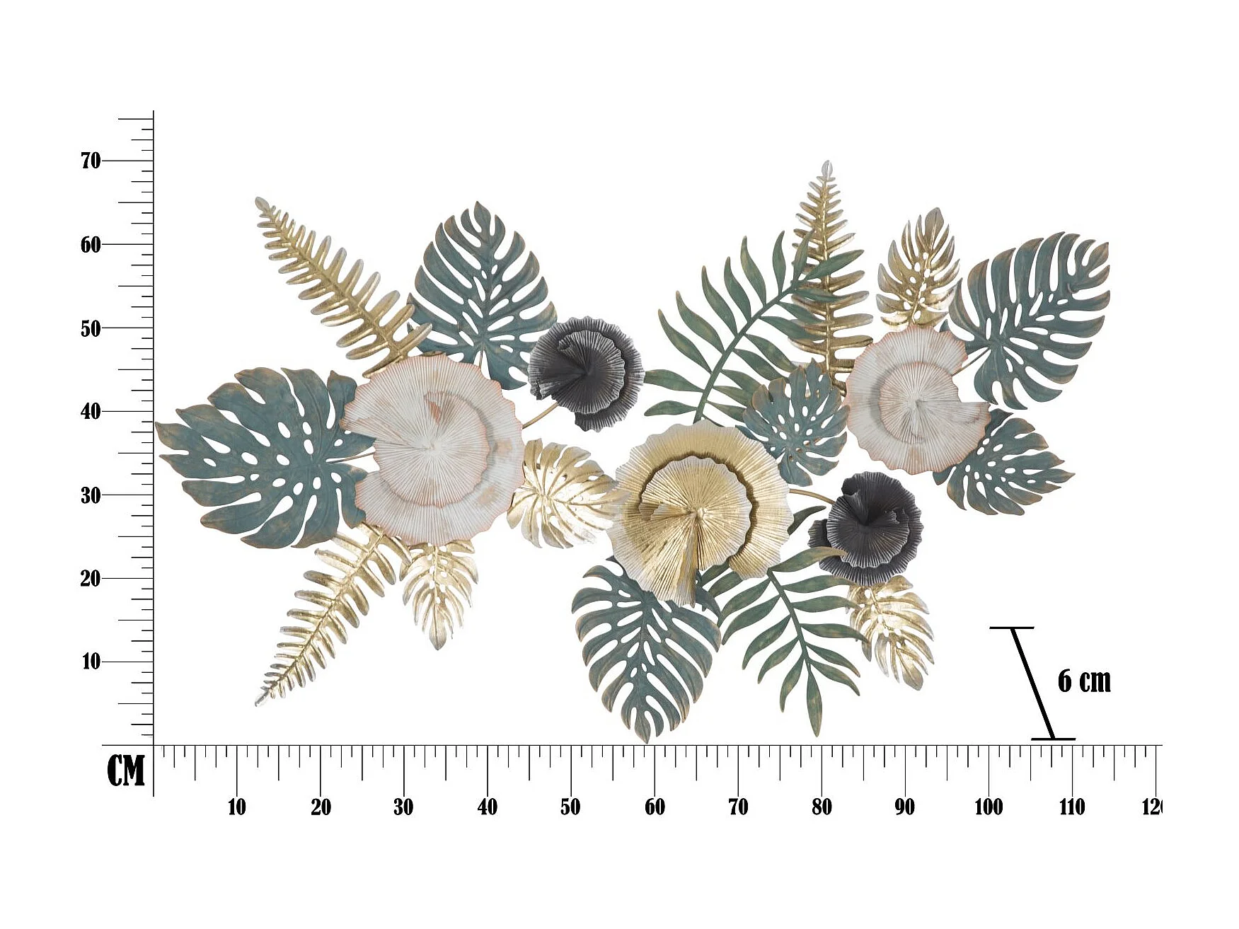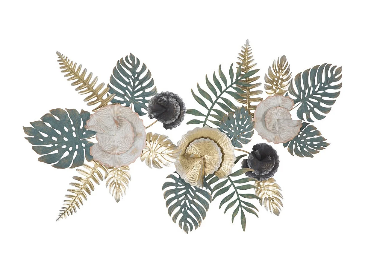 Decoración de pared 3D en metal multicolor estilo tropical con hojas Amaz