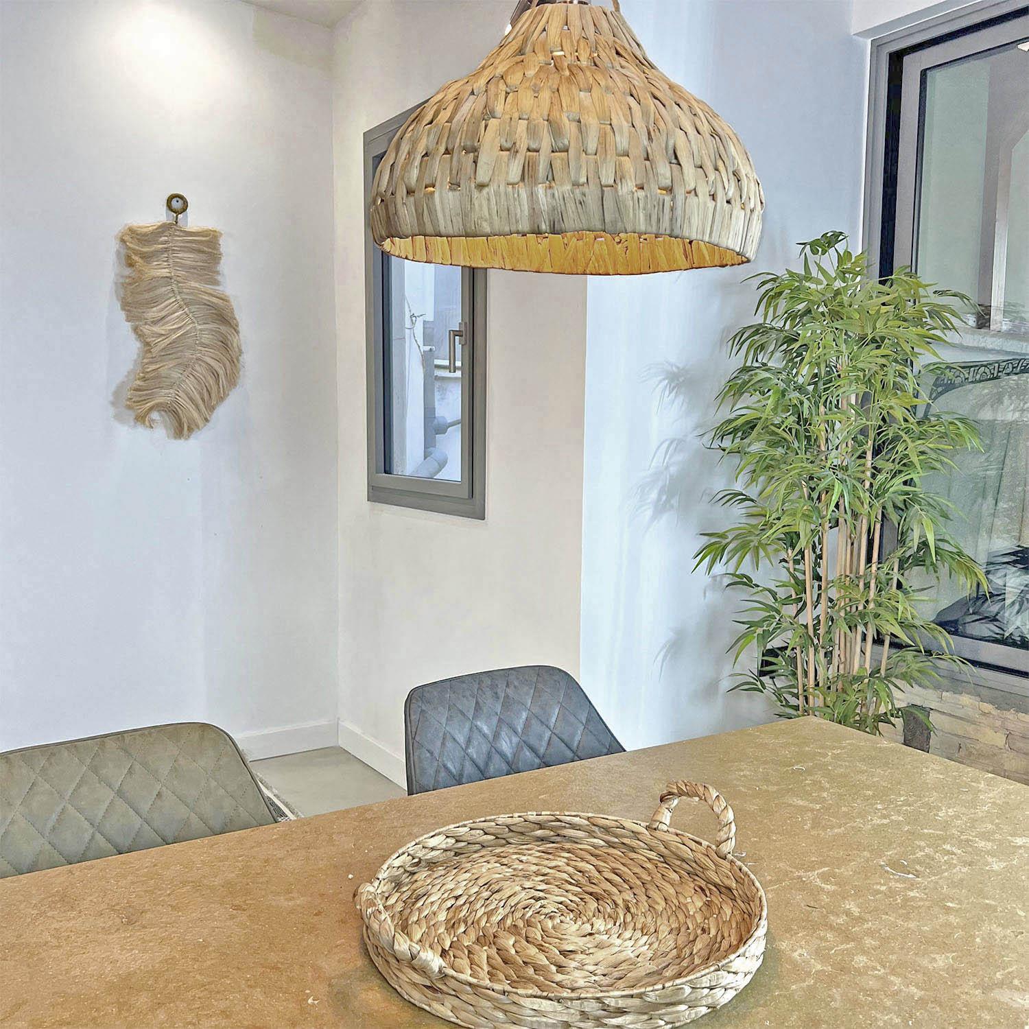 Lámpara de mesa Yuna de bambú, diámetro 22,5 cm