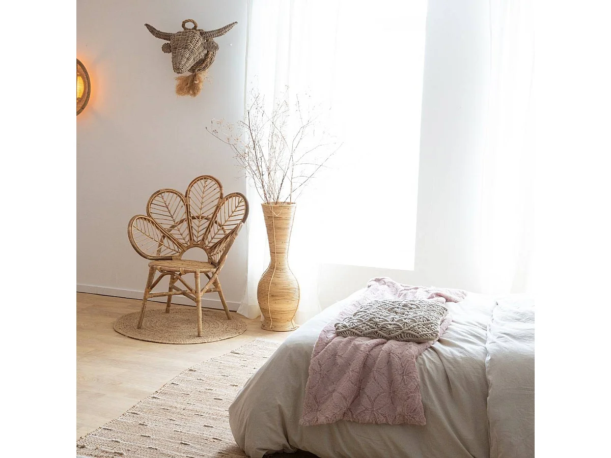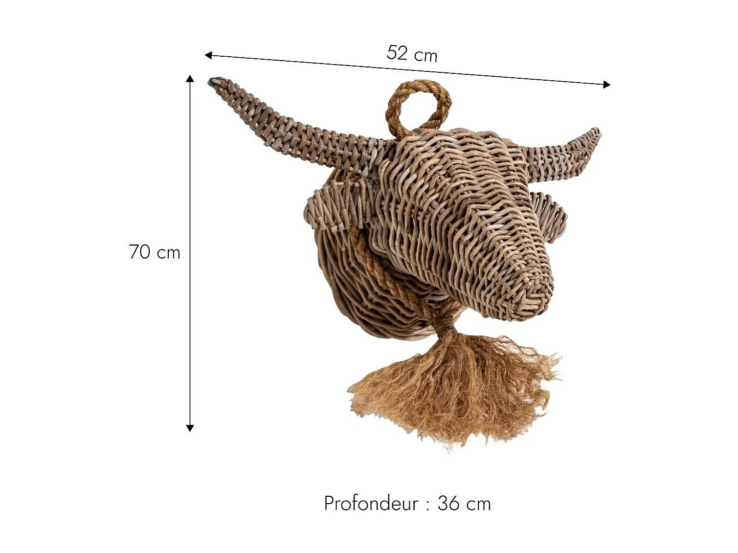 Decoración mural de cabeza de toro en ratán Rattan - Tonos luminosos para una pieza única