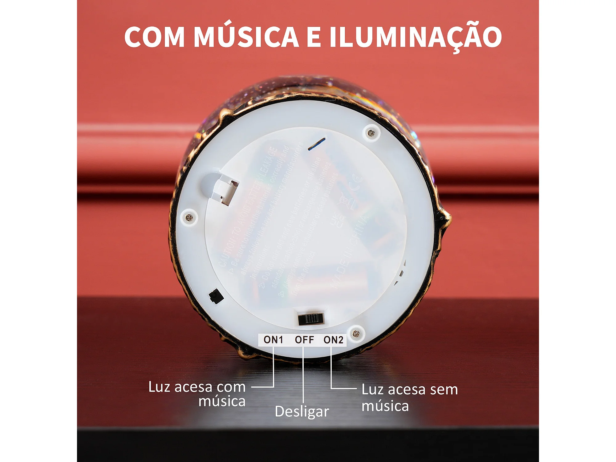 Decoración navideña Bola de nieve Homcom música + luz multicolor Ø12x18,6 cm