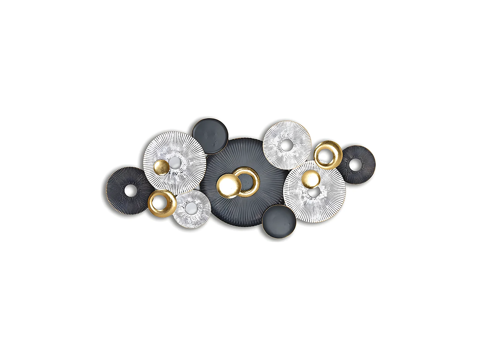 Decoracion de pared de metal , circulos blanco, negro y dorado, 120*56cm mallorca