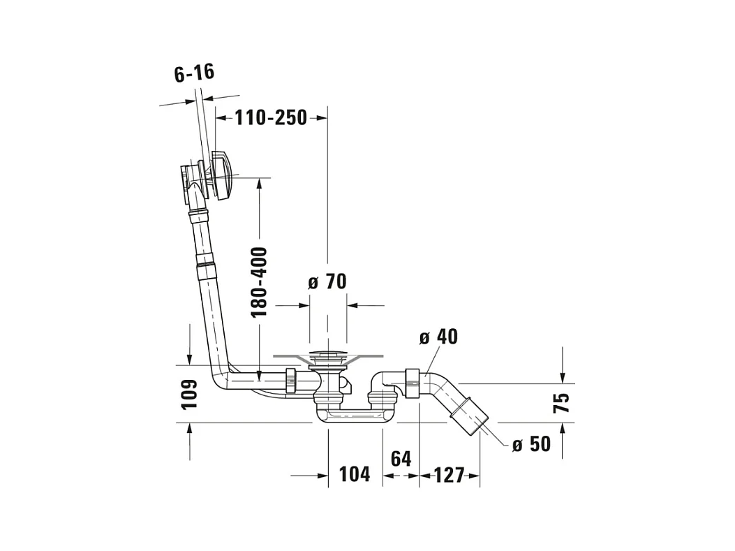 Desagüe de bañera DURAVIT lateral 40x8x40 cm