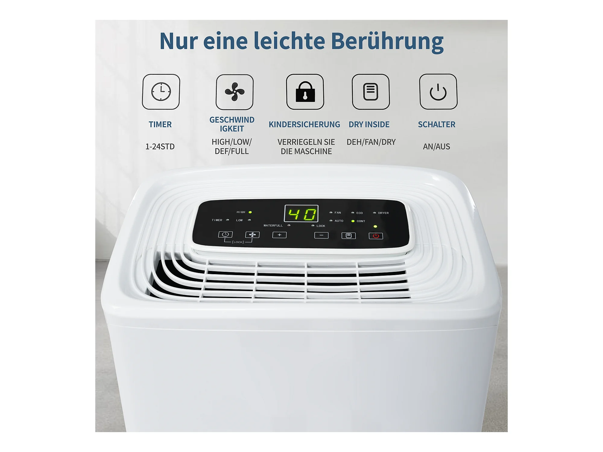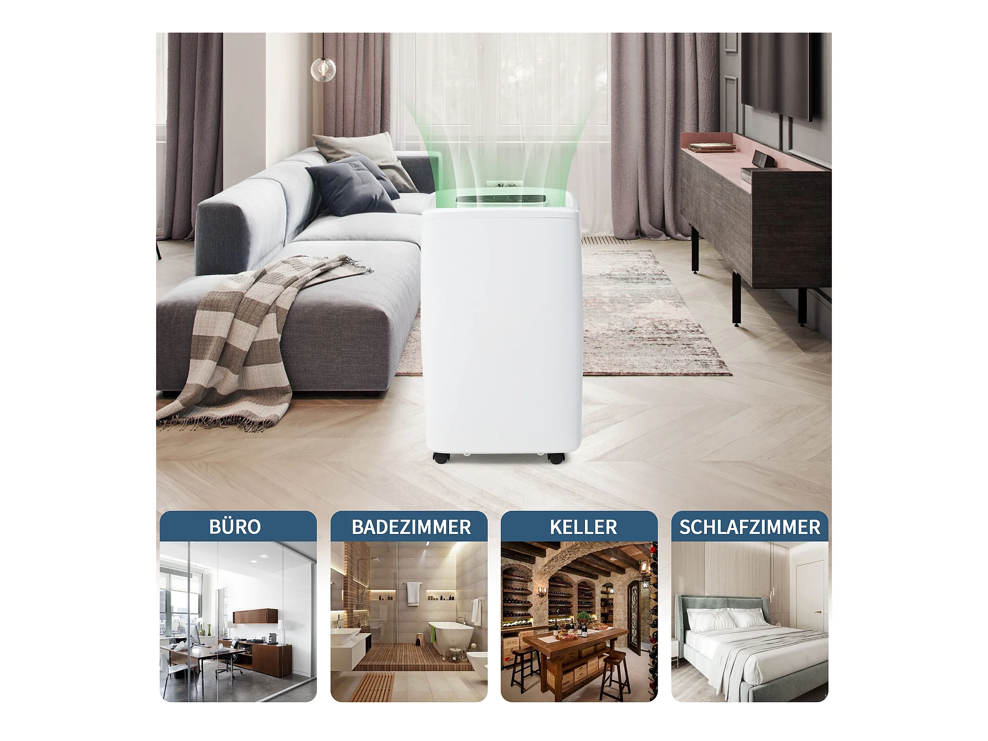 Deshumidificador 12L/día, 3 en 1, Deshumidificador, Purificador y Secador de Aire, Tanque de 1.5L, Temporizador de 24h, Pantalla LED, para 15㎡, Blanco