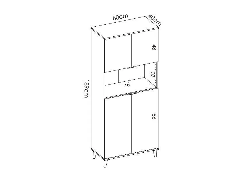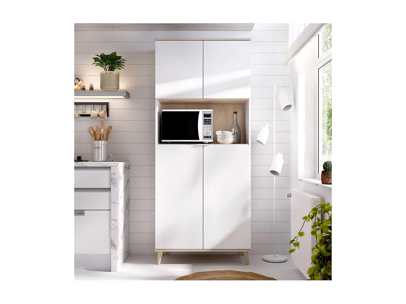 Armario multifunción Dlarin, Mueble auxiliar de cocina, Aparador con 3 puertas y 1 cajón con baldas, armario abierto, 108x40h126 cm, Blanco y Roble