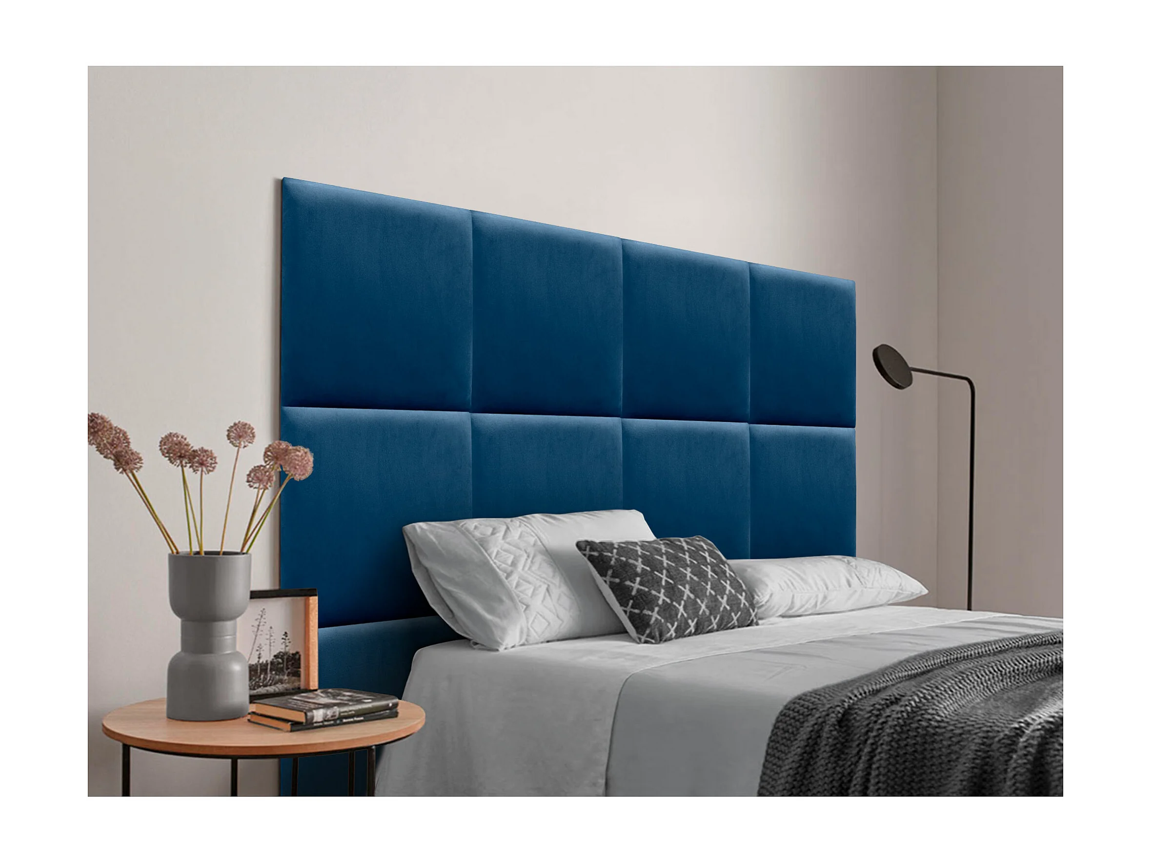 DHOME Cabecero Tapizado en Terciopelo Premium Compuesto de Paneles Autoadhesivos Intercambiables Lujo Dormitorio Acolchado (Azul, 120cm)